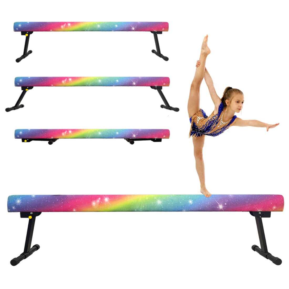 Sealoha 8ft Ultrasimple Adjustable&Foldable Balance Beam,High-Low Floor Beam Suede Gymnastics Equipment,No Tool Require