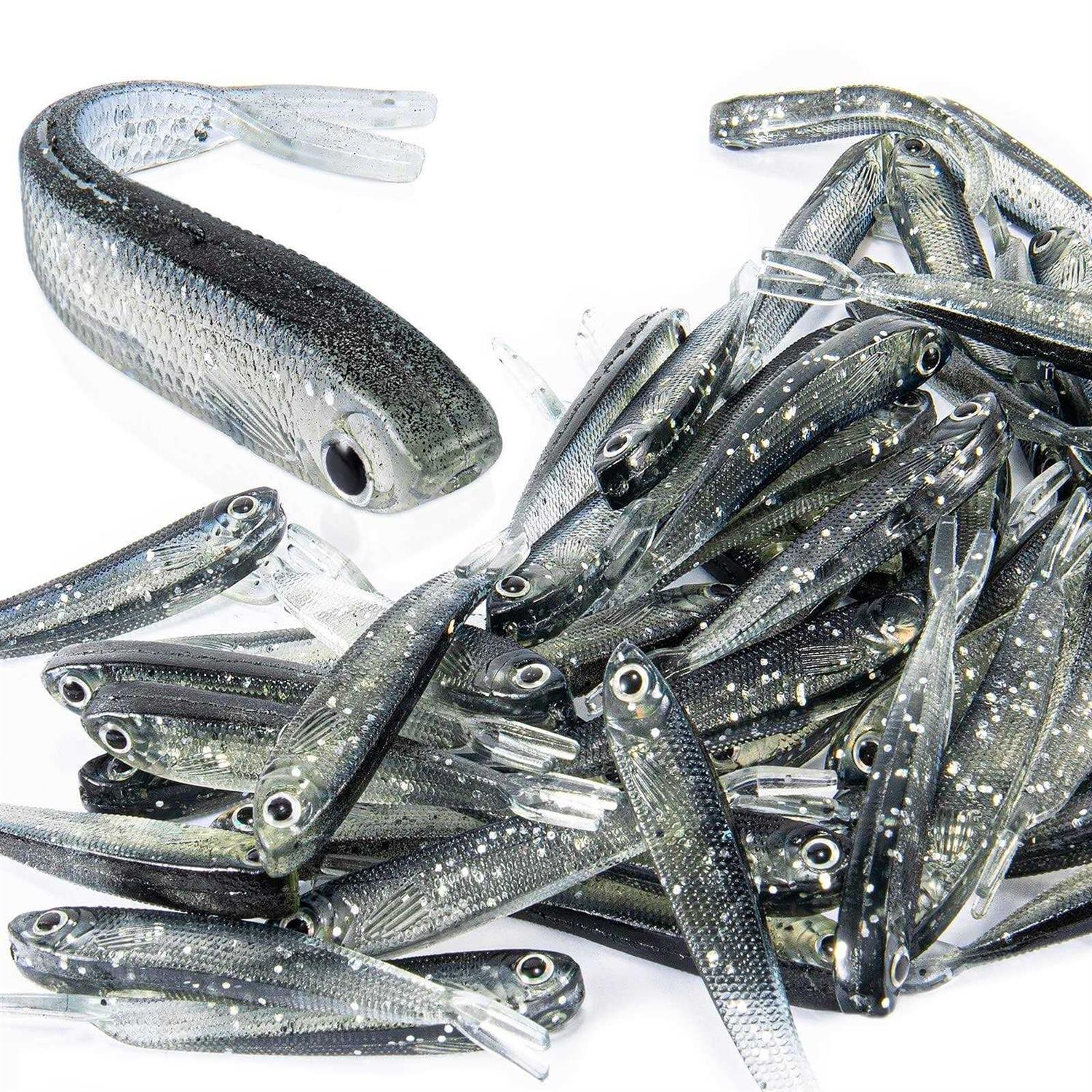 Syosisny 50 PCS Plastic Soft Fishing Lure, Lifelike Forked Tail Minnow, Fishing Baits Tackle for Saltwater and Freshwater Bass