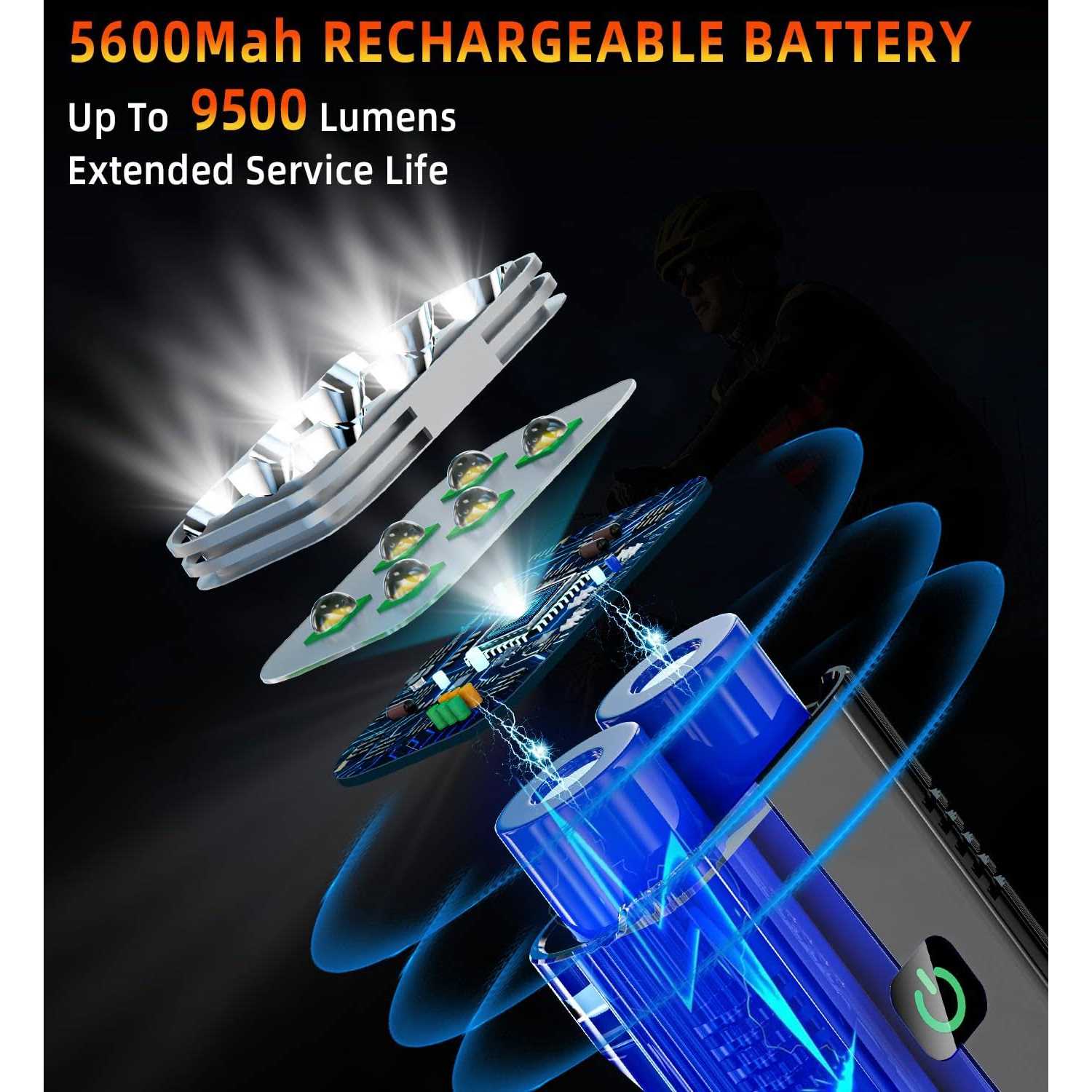 2024 New 6 LED 9500 Lumen Super Bright Bike Lights for Night Riding,360°Rotatable Bike Headlight,Bicycle Light-10 Modes,Runtime 36+ hrs,Upgrade