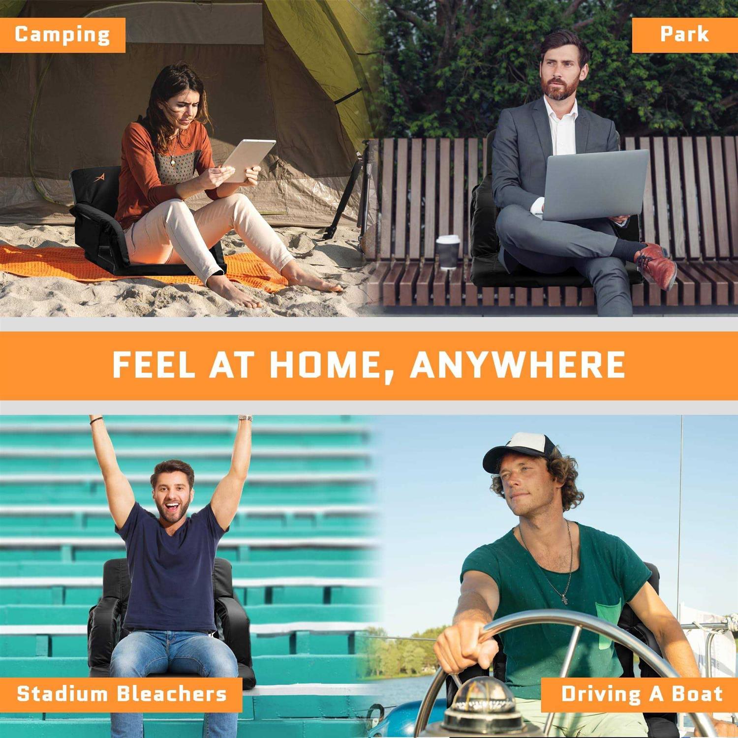 Heated Seat for Bleachers by Aceletiqs Bleachers are no fun- scorching hot in summer, wet or freezing in the winter. Acelitiqs now lets you bring the warmth and comfort of your home couch, right in the Stadium with its heated seat! Watch All Your Favorite Sports Games, in Deluxe Comfort The Acelitiqs Heated Seat: Can heat up to 115 degrees Fahrenheit and has 3x heat settings for ultimate comfort Has a 15” by 6” large back pocket, 3x zippered side pockets & cup holder Features 6x adjustable reclining positions Delivers back and arm support through a luxuriously soft padded construction Includes the USB battery you need to operate the heating mode Simply put, you will feel like a King or Queen whether that game is outdoors or indoors, during any season, in any Stadium. Ready to make the Stadium your home away from home? Proper Support & Comfort Our sports chair is 20” wide and features high-density foam for ultimate comfort. The foldable design incorporates padded arm rests, back support and can be adjusted in 6 different reclining positions. 3 Heating Settings Keep warm during the colder months of the year! At a push of a button, you can choose between 3 heating settings that reach up to 115F. For the heat, you can use any USB battery pack, or our included one! Foldable, Portable Our sports seat was designed to make life easy as it can be easily transported thanks to its foldable design. Our seat can fold flat and be effortlessly carried with the back straps, anywhere you wish. So wait no more! Click Add to Cart Now & Enter a Whole New Level of Entertainment!
