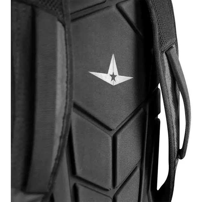 All Star MVP Pro Series Catcher’s Batpack – The All-Star MVP pro series dual hybrid backpack can hold a full set of catchers gear and just about everything else you need for the diamond. A compression-molded glove vault compartment at the top of the bag protects your mitt while the compression-molded back panel protects your back from the gear inside the bag. This batpack includes 2 bat sleeves, outside “cleat seats” to hold your spikes, and a fence hook for easy access when you are at the field. There’s also reflective branding on the bag for high visibility in parking lots on dark nights. This all-in-one baseball/softball backpack is also equipped with adjustable inner pockets for valuables and premium corded zipper pulls. , All Star, All Star MVP Pro Series Catcher’s Batpack .