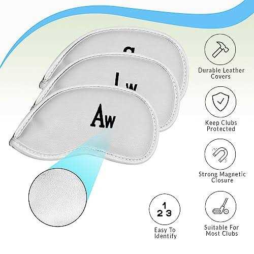 All Teed Up Premium Magnetic Leather Iron and Wedge Golf Club Head Covers | Set of 10 | Fits Most Clubs | Embroidered Club Label On Both Sides of