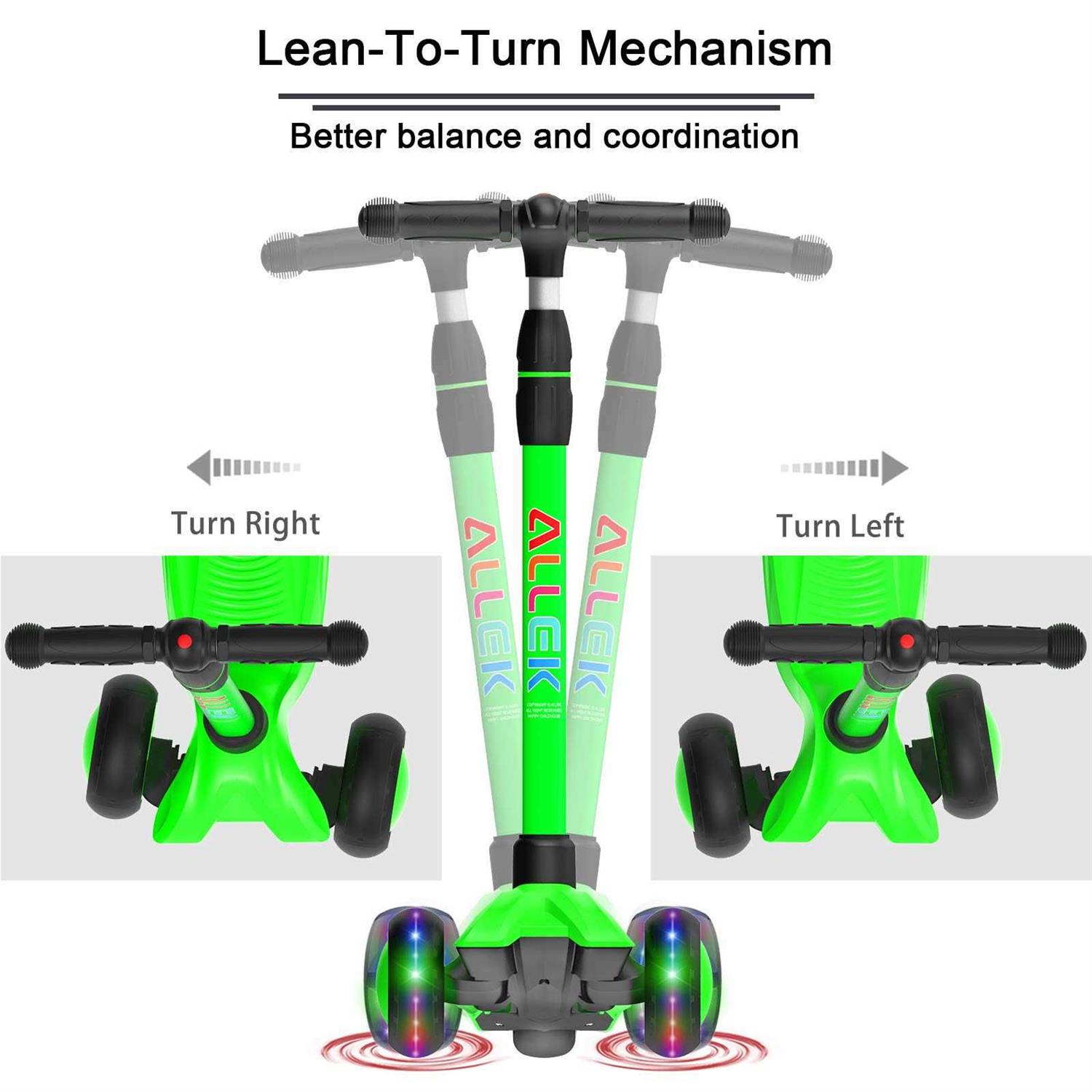Allek Kick Scooter B03 with Light-Up Wheels and Any Height Adjustable for Children from 3-12yrs (Green)