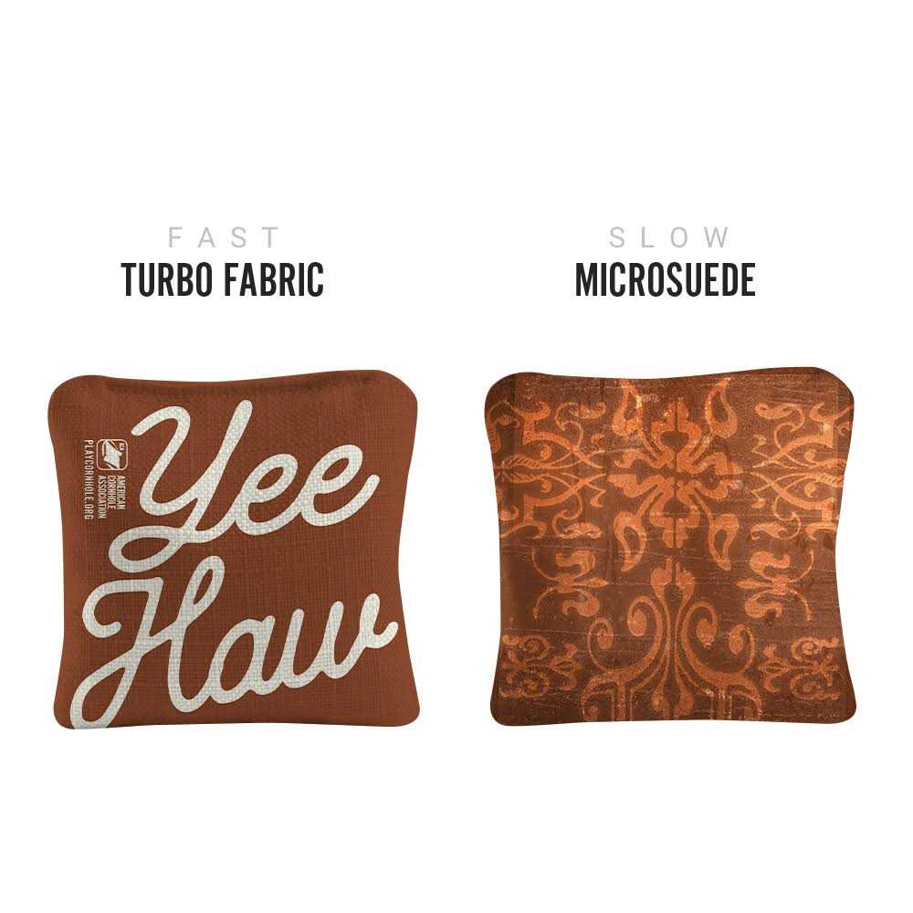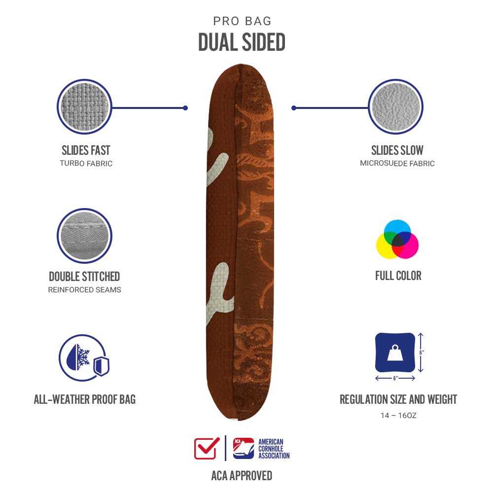 Introducing Synergy. A refined balance of speed and control. These dual-sided pro cornhole bags give everyday cornhole players a competitive edge so you can start tossing like the pros. From the team that brought the original and official rules to the game of cornhole, ACA Synergy professional cornhole bags are made of a premium microsuede material on one side which allows the bag to stick to the surface for extra grip while the opposite side of the bag is made of a carefully selected turbo fabric for easy sliding. Double reinforced stitching ensures long-lasting durability while the all-weather resin pellet filling holds up against harsh playing conditions.