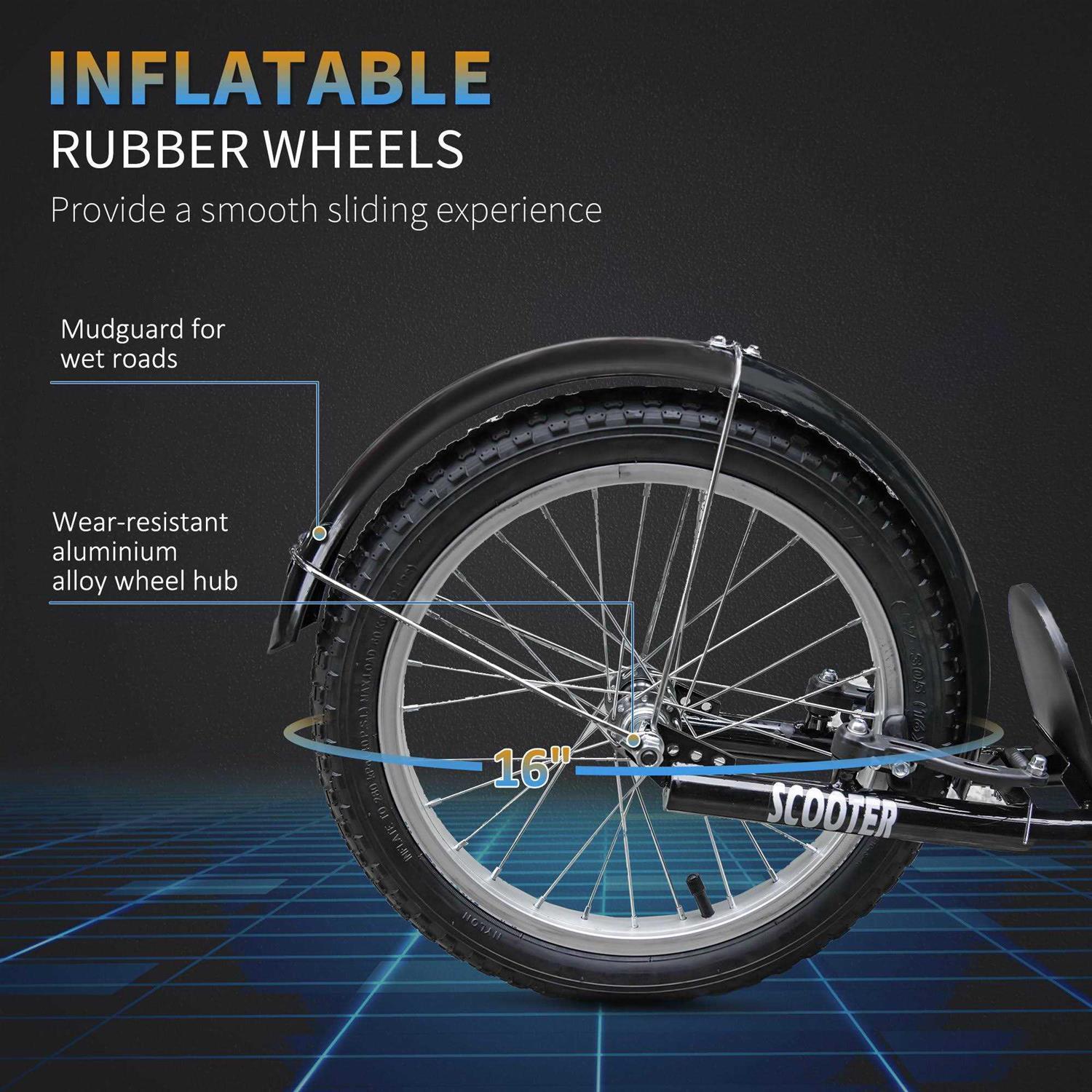 Youth Scooter Kick with Adjustable Handlebars, Brakes, 16 Inflatable