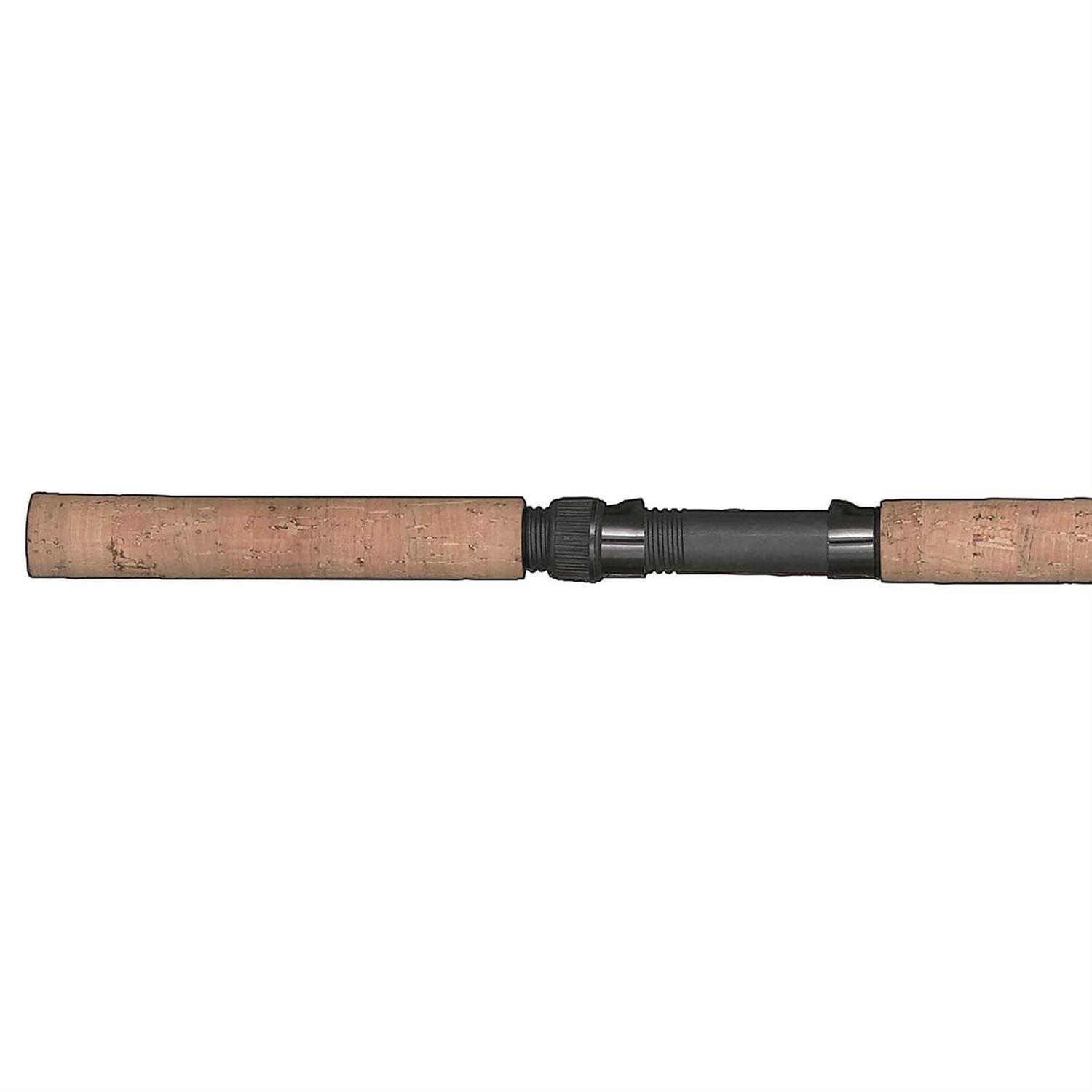 The B’n’M Sam Heaton Super Sensitive 9 Feet 2 Piece has a brass plated guids, a Portuguese cork handle, and a great burgundy color. Made of IM-6 graphite (40 million modulus) blanks, these rods are especially designed for crappie and panfish. Aluminum oxide guides provide smoother line flow and prevent line sticking. Dimensions: 54″L x 1″W x 1″H.