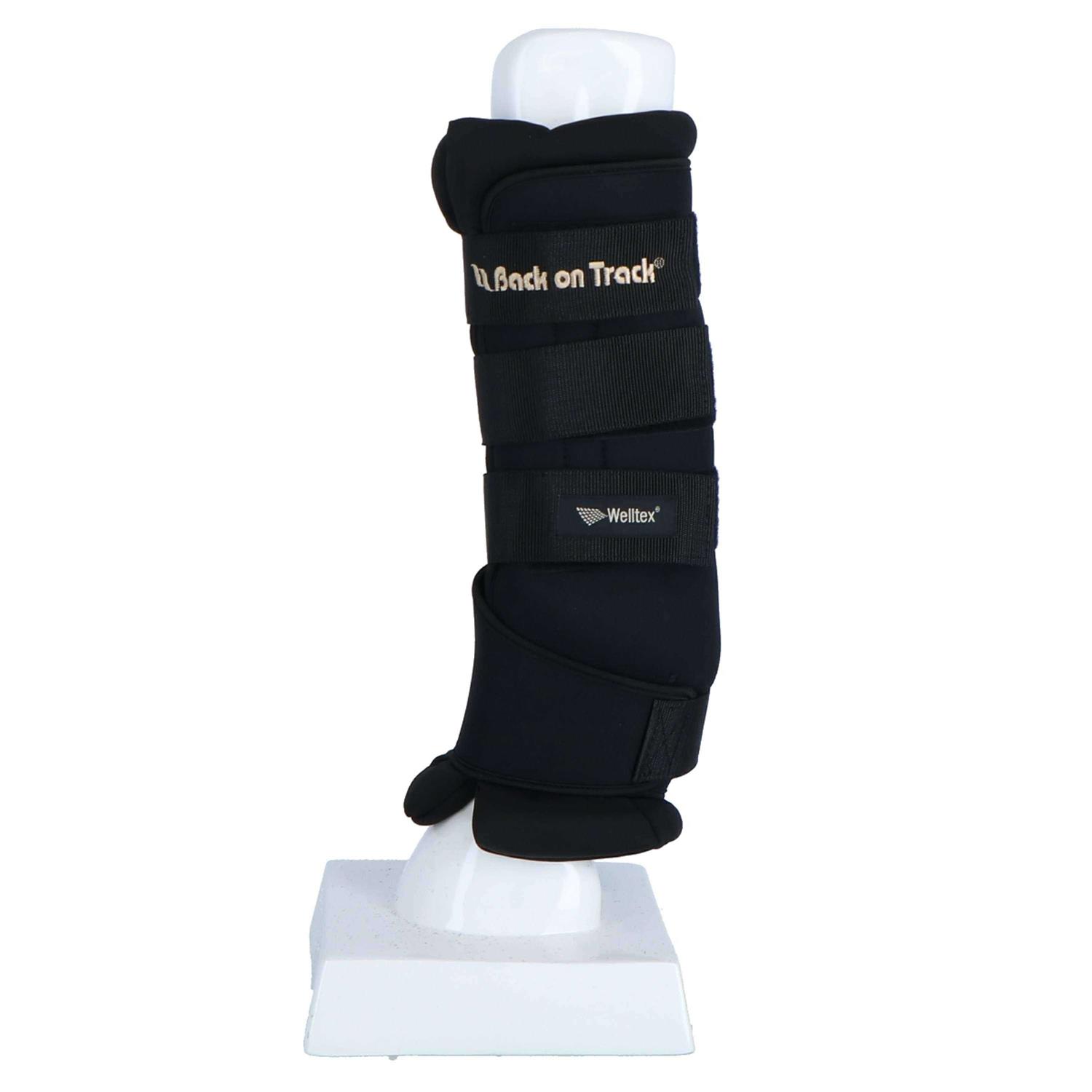 Black Sold as Pair Quick and Safe to Use Therapeutic Thermal Warmth No Liniment is needed BOT03 This is a great leg wrap for every horse. Quick and safe to use, especially for those less experienced in wrapping legs. This Therapeutic horse leg wrap uses a shell of neoprene, inside is a pillow wrap with four Velcro closures. Designed to reflect the horse’s own body-warmth, it creates a soothing far infrared thermal warmth, which can help alleviate pain associated with inflamed muscles, ligaments, tendons and joints. Used for both injury prevention as well as injury recovery. No liniment is needed. You can also replace poultice with these leg wraps. The wraps take down swelling in the horses legs in just a few days and also can get wind puffs to be softer or can reduce them completely. The Quick Wrap is designed so no additional bandage is needed.