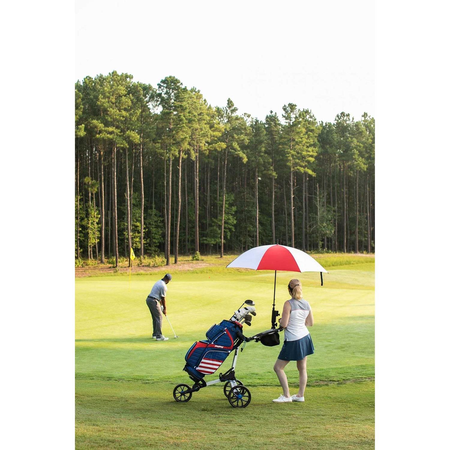 The Bag Boy umbrella holder XL 5cm with base. Suitable for all Bag Boy trolleys with pre-mounted base, the umbrella holder ensures that you are not in the rain. The golf brand Bag Boy belongs with its high-quality golf trolleys and golf bags for a long time in the world of golf to a fixed size. The quality of workmanship is high and technical innovations always impress golfers. Practical and functional details prove to be extremely useful, while modern materials are gentle on the golf equipment and also on the golfer’s muscle power. Bag Boy golf products are stable, super light and elegant.
