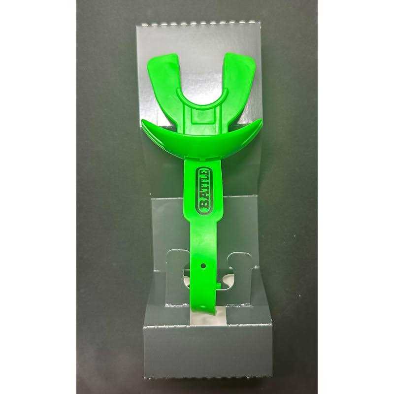 The Battle Sports Speed Football Mouthguard with Connected Thick Strap is developed by athletic, dental, and medical experts to deliver superior airflow and better performance. Take your game to another level! This mouthguard features built-in airflow channels to maximize your oxygen intake and breathability. This next-level mouthguard is engineered with an extended lip shield and connected tether strap to assure maximum protection and security through impact. Minimal bite wings paired with a high-quality, super-soft material provides an extremely comfortable fit, even with prolonged use. Features: No boiling required. Tether attached. Works with braces. Helps open TMJ. Maximum breathability. Advanced composite. Lip shield and bite pad. One size fits most.
