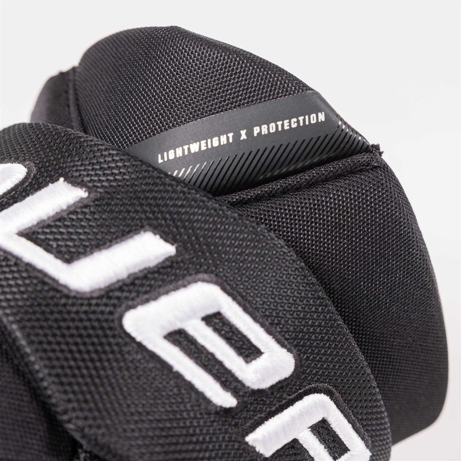 The key upgrade of these hockey gloves is the cable mesh outer material on the backhand. Double density foam with HYPERLITE HD and PE inserts offer a secure and comfortable fit for pro players, while the 3-part finger index with triple density foam and PE inserts provide protection and dexterity. The two-part flex thumb allows for a full range of motion. The moulded cuffroll with 3D stick grip helps keep your stick in place, while the Ivory Pro Palm with comfort stretch inserts gives you a sensation of not wearing gloves at all.