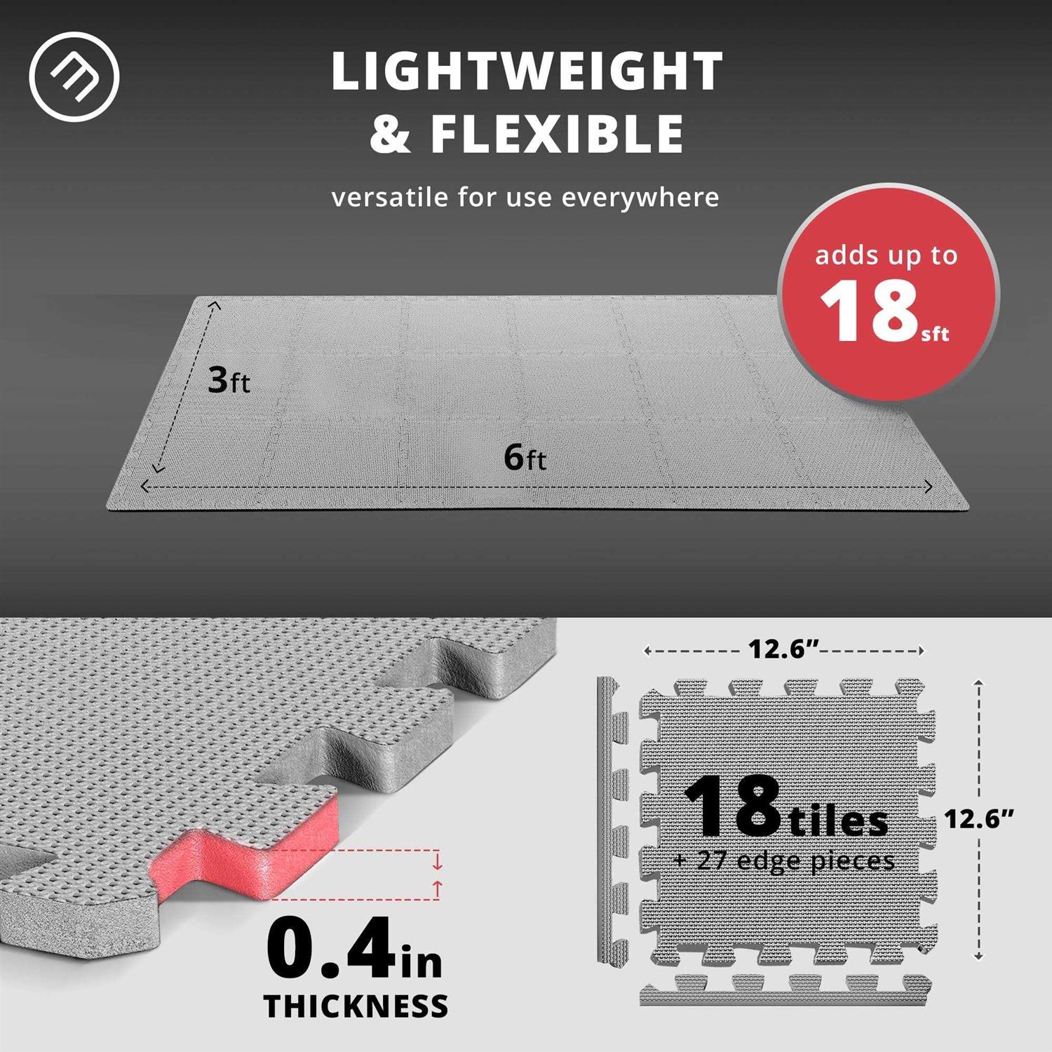 Gym Flooring Set – Interlocking Eva Soft Foam Floor Mat, 18 Pieces Puzzle Rubber Tiles Protective Ground Surface Protection, Play Workout Exercise
