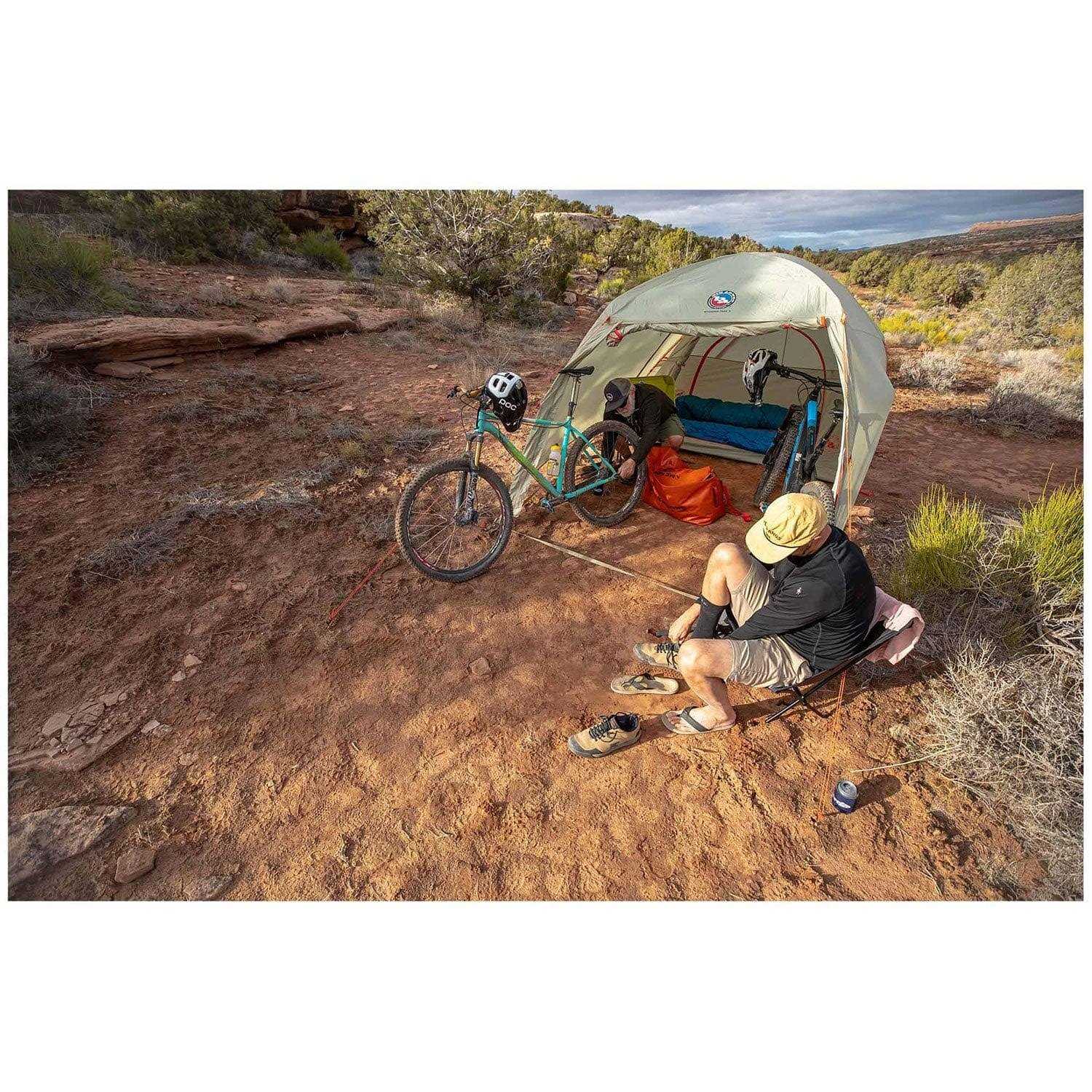 Built to maximize vestibule area for shared common space or gear storage, the Wyoming Trail 2 tent provides double-wall protection with plenty of room to hang out under cover. This 2-person tent is packable for two-wheeled bikepacking travel and the weight can be easily split between your tentmate on the road. The 4-person can accommodate two separate sleeping areas for couples, or families with older kids who prefer the privacy. The Wyoming Trail 2 is your new favorite three-season, free-standing, multi-use shelter for bikepacking, adventure moto missions, car camping and beyond.