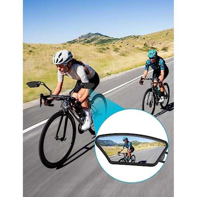 【Multi-Purpose Application】: Bike rear view mirror is suitable for handlebar diameter 22.2mm-25mm. Bike mirror prefect for most mountain bikes, E-bikes, road bikes, city bikes etc. 【360 Degrees Rotation】: Bicycle mirrors for handlebars is designed with adjustable 360°rotation, which has wide field of view is adjustable to any viewing angle. Bicycle mirrors install at the end of handlebar can get better sight. 【Wider View】: The HD glass bike mirrors handlebar rearview mirror offers you a clear view and provides a wider rear view, bicycle rear view mirror, which is very helpful to keep you safe on the road. 【Sturdy and Durable】: Bike side mirrors is designed with high-impact frame which is made by ABS materials,and high-hardness aluminum alloy base clamp. The sturdy structure ensures that the bike mirror would not shake, crack or break, so it can be used for a long time. 【Easy to install】: Equipped with the appropriate screws and the tools, you can install and disassemble the bike mirror easily. 【360 Degrees Rotation】: Bicycle mirrors for handlebars is designed with adjustable 360°rotation, which has wide field of view is adjustable to any viewing angle. Bicycle mirrors install at the end of handlebar can get better sight.