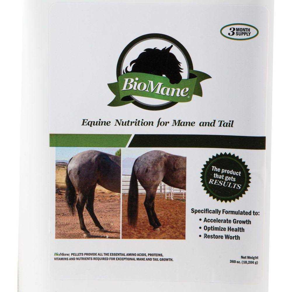 An easy to use pelleted supplement made to provide all the proteins, vitamins, and nutrients to support noticeable healthy mane and tail growth, as well as healthier coats. – Specifically formulated to accelerate hair growth and optimize coat health – An excellent choice for horses with thin tails and those that rub the top of their tails – Recommended for all breeds and ages of horses – Formula provides horses with proper nutrients to grow longer, thicker, healthier manes, tails and coats – Keep a show-ready mane and tail year-round – Crude Protein (Min) 13.7, Crude Fat (Min) 5. %, Crude Fiber (Max) 6.1, Calcium (Min) 0.5, Calcium (Max) 0.7%, Phosphorus (Min) 0.6, Zinc (Min) 100 pp, Vitamin A (Min) 6100 IU/L, Vitamin D (Min) 2300 IU/L, Vitamin E (Min) 80 IU/LBContains 90 daily servings in a tasty pellet form, great for picky eaters – Feed 1 scoop per day (scoop included)