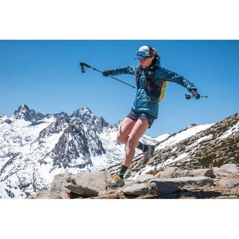 Distance Carbon Running If trekking poles are a mountain runner’s ‘samurai swords,’ then the Black Diamond Distance Carbon is the Hattori Hanzo edition. Designed in collaboration with BD Athlete Joe Grant, the fixed-length Distance Carbon weighs in at a sleek 95 grams per pole (120 cm), making it BD’s lightest pole in the line. The touch-points are minimal, though carefully placed, such as the subtle mid-shaft ring for balance and grip while carrying the pole horizontally. The slimmed Distance Grip consists of an ultralight, durable EVA foam, and the tip has been completely redesigned to for a lower profile that also accepts z-pole snow baskets. Simply put, these poles are engineered to go fast, whether you’re 10 hours into an ultra, or linking peaks in fast and light style. Distance Carbon Running Features 95 grams per single pole 120cm Distance Grip with ultralight, durable foam Mid-shaft ring for horizontal carrying balance and grip Fixed length Tech Tip – Rubber included Tech Tip – Carbide sold seperately.