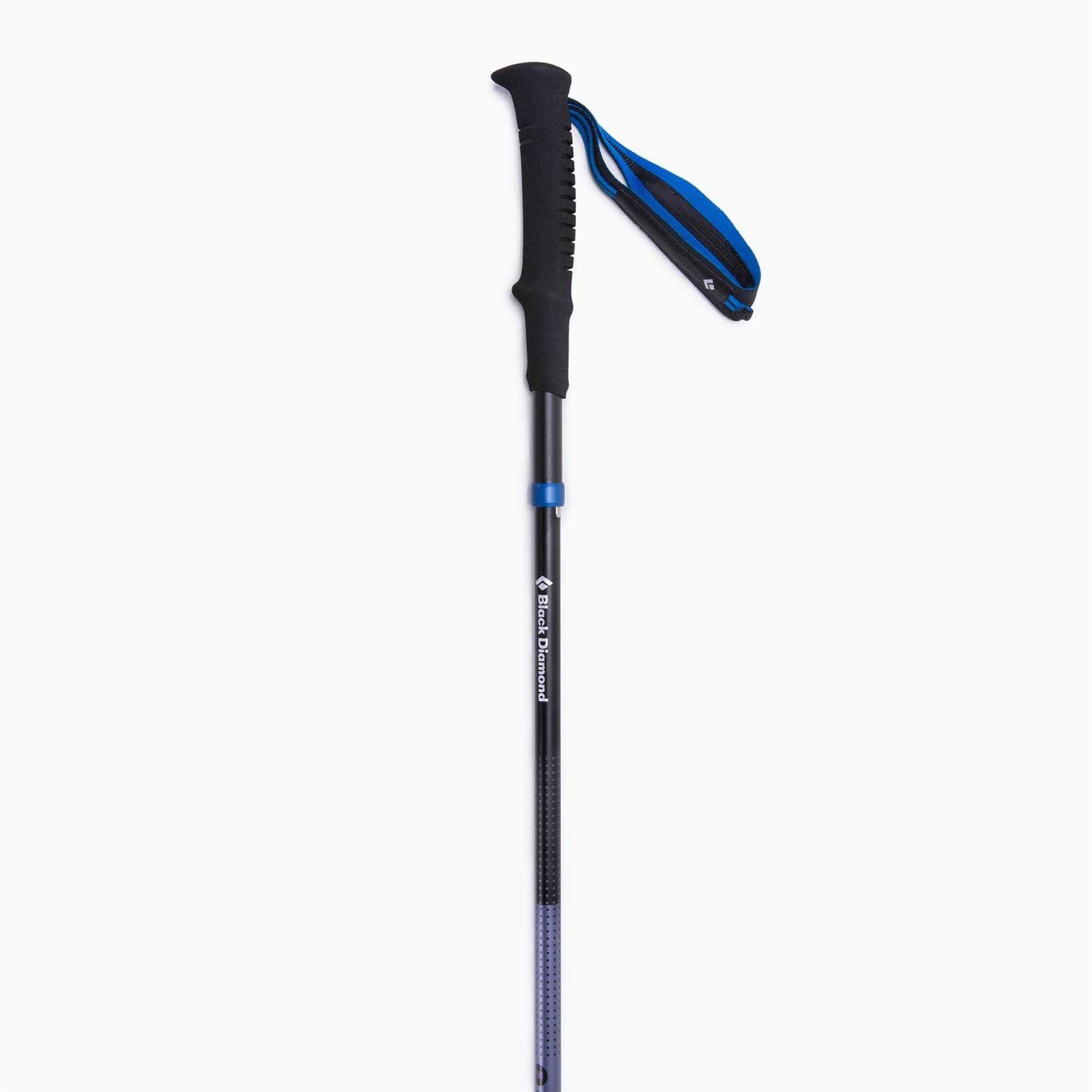 Versatile pole designed for everyday use from trail running to hiking and backpacking. The Distance Z Black Diamonds most affordable folding Z-trekking pole. The Distance Pole a mid-range pole forming part of Black Diamonds Z-Pole or folding range. The Z-Pole technology gives you a collapsible design that folds to a small pack-size allowing for easy transport and storage. It has a 3-section shaft and features a concealed inner Kevlar cord which keeps it lightweight. It easily snaps into place, locks with a single pull, and can collapse down with a push button mechanism.This versatile walking pole ideal for all types of terrain from trail runs, day trips and other small trekking tours whatever the distance. It features an extremely durable aluminium construction making it lightweight and long lasting.It features a lightweight EVA foam grip with extension allowing for loads of possible grips and a moisture wicking strap means no more sweaty hands.