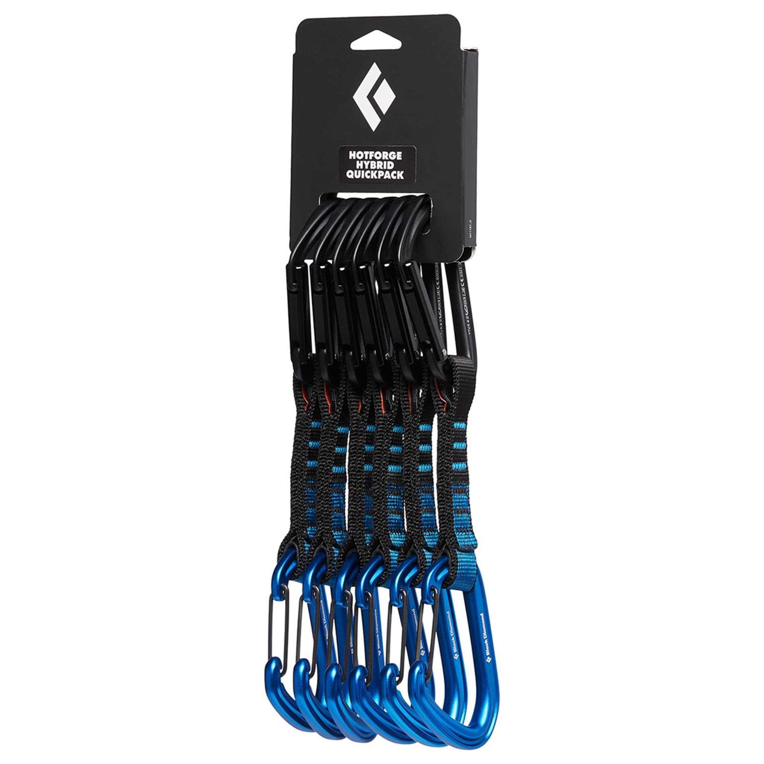 Black Diamond – Hotforge Hybrid Quickpk 12 cm contains 6 pcs. carabiners equipped with the new snag-free HotForge keylock carabiner on top and on the bottom a newly designed lightweight, fast, easy to clip on and off HotWire carabiner. At the bottom, it is colored blue, so it can be seen when you are out climbing. In addition, you save some weight on your climbing trip, with a weight of only 99 g. With this model, Black Diamond combines easy on and off with functionality. and a comfortable 18 mm polyester dogbone which has a good grip.