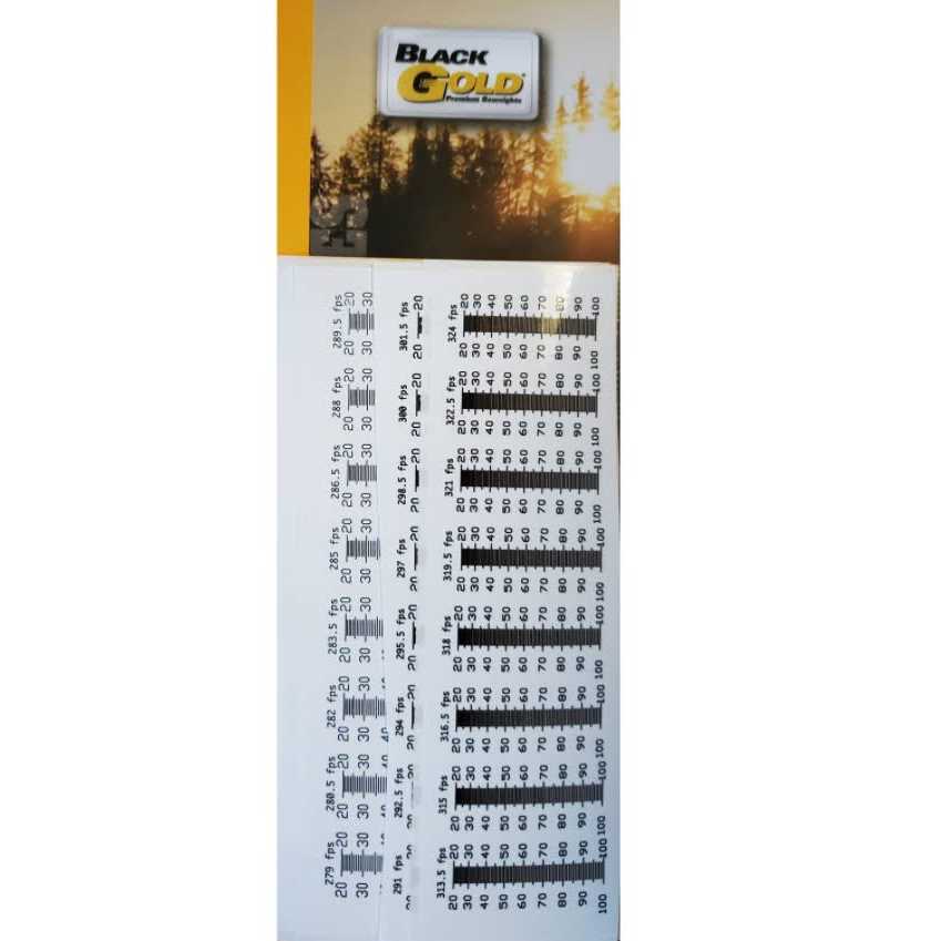 Includes 54 different sight tapes from which to choose. Precisely callibrated for enhanced precision With 54 different tapes, theres one for virtually every bow speed! This kit includes 54 different sight tapes from which to choose. The engineers at Montana Black Gold have done the work and calibrated the charts so you don’t have to. Simply shoot your adjustable sight at 20 yards and 60 yards and, using these two distances, select the sight tape for your bow’s speed. With 54 tapes to choose from there is one for virtually any bow’s speed. This kit will work with any type of adjustable bow sight and will make you more accurate by giving you precise, to-the-yard markings.