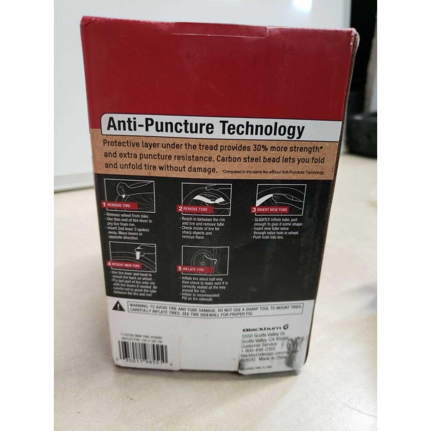The Blackburn 700c Hybrid Bike Tire with Anti Puncture Technology is a smart choice for anyone who owns a compatible bike. Anti Puncture Technology provides a protective layer with increased strength and extra puncture resistance. Our hybrid bike tire features a carbon steel bead for extra safety, and tire strength. They are extremely durable and built to stand up to the elements. The optimized tread pattern delivers performance on pavement and traction on trails and the reflective sidewall stripes make you more visible in low light conditions. Conveniently, these tires fold and unfold without damage, making them easy to transport from place to place. Blackburn tires are ultra-durable and made for adventure. The tires will stand the test of time, ride after ride.