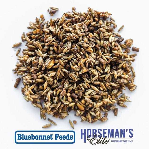 Bluebonnet Feeds Horsemans Elite Performance Race Track Sweet Horse Feed, 50-lb bag; Bluebonnet Feeds Horsemans Elite Performance Race Track Horse Food is a tasty and textured sweet feed designed for horses who prefer the taste of molasses and need whole oats and cracked corn in their diet. Formulated by equine nutrition experts, the open label and locked formula ensure consistency for all your horse pals. Clean sweet feed includes a tasty blend of oats, cracked corn, barley and molasses. Formulated by equine nutrition experts. Manufactured in an ionophore-free and ractopamine-free facility Features balanced trace mineral profiles The open label and locked formula ensure consistency and quality for your special buddy.