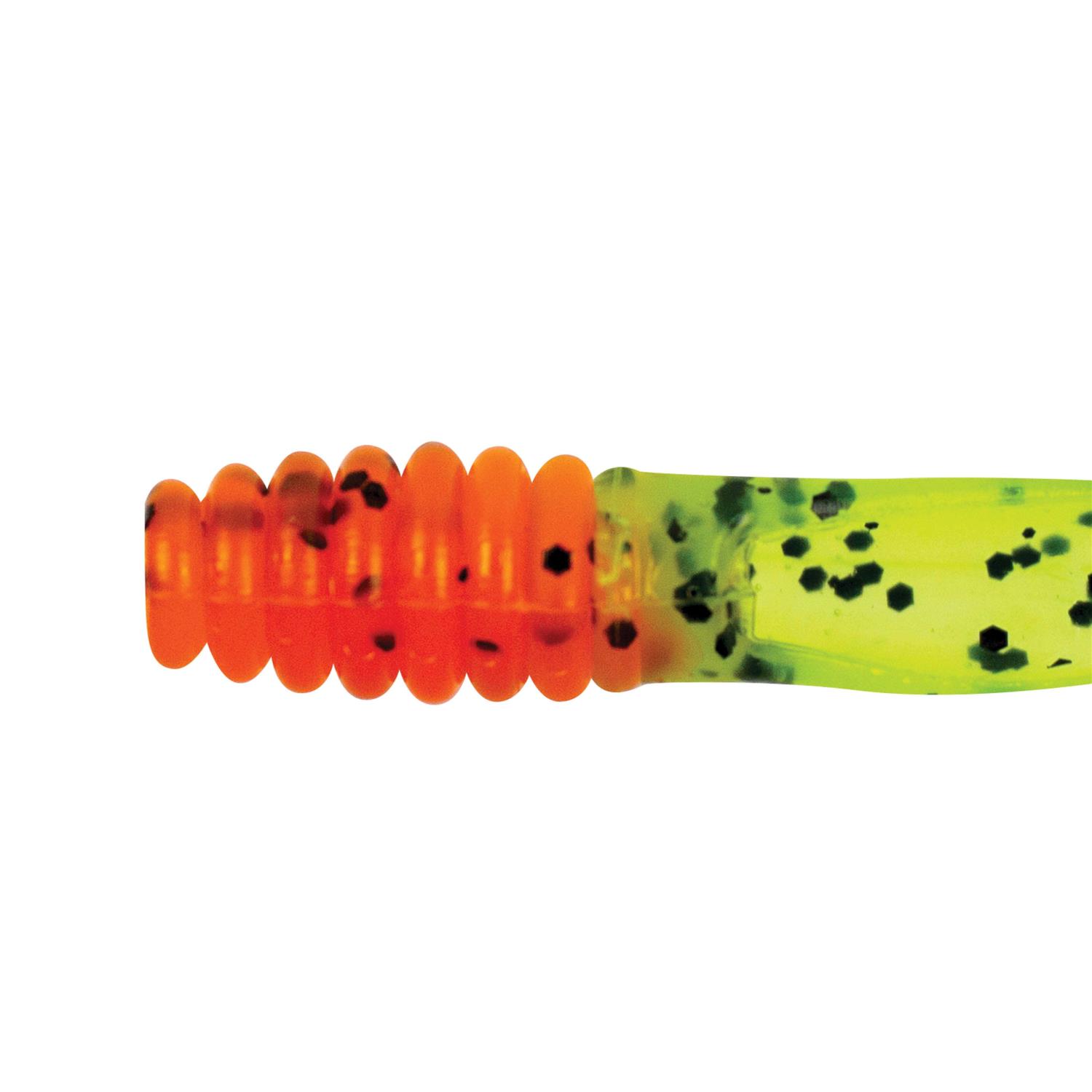 The Bobby Garland 2 Slab SlayR is one of the most versatile crappie baits ever designed. The lure has a ribbed, round solid body and thin spear-like cupped tail. Its tail makes up 2/3 of the lures total length and provides lots of action. Rig the bait on a jighead with the tails cup facing up, and it has an unpredictable and erratic darting fall. Rig it with the cup facing down for a more predictable, controllable action like desired when fishing brush piles. Even when held at rest, the tail dances in tantalizing action, making it an ideal choice for all seasons. It works best on jighead sizes from 1/24 ounce to 3/16 ounce.