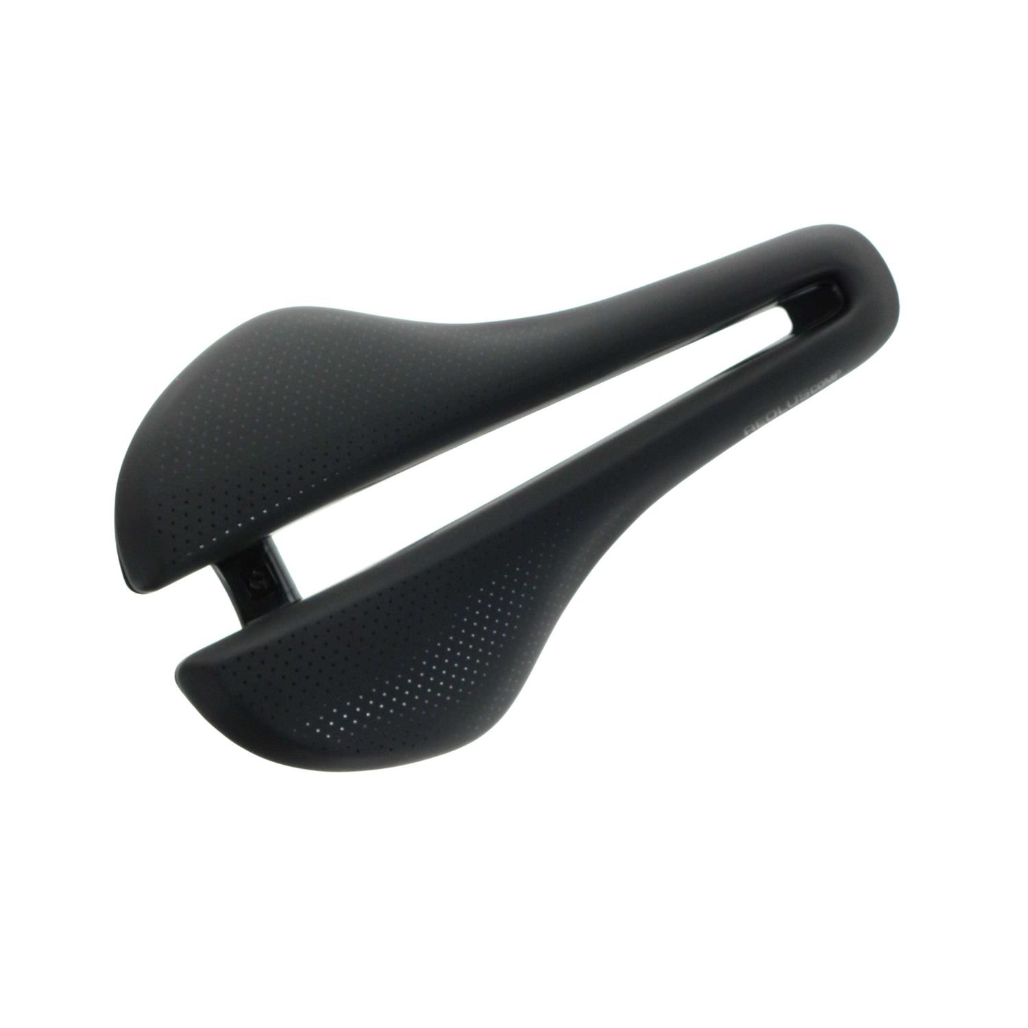 The Bontrager Aeolus comp is a performance orientated saddle. The saddle has an aerodynamic design and provides optimal support while in aerodynamic positions. In your drops, lying on your shifters or on a time trial bike you will easily achieve what you set out to do! The saddle has comfortable padding covered by imitation leather. The rails on the underside are made of steel. The steel rails do a good job filtering out bumps and other obstacles. These rails, and its broad cut-out are why this saddle will help you to achieve your potential! Saddle shape This saddle has a semi-round rear part, making it highly suitable for riders who move a little while they ride and whose hips rock a little from side to side. The semi-round shape provides plenty of support for those riders while maintaining sufficient freedom of movement compared to a flat saddle. Flexibility This is an S-shaped saddle, meaning it’s raised at the back and lowered in the middle. This S-shape makes it possible for people with an inflexible spine to assume a proper riding position. This has to do with how easy these riders find it to rotate their pelvis. People with an inflexible spine often have more trouble rotating their pelvis, meaning they could use some extra support. Cut-out This saddle has a cut-out and alleviates pressure for those who often experience discomfort or pressure to their soft tissue areas.