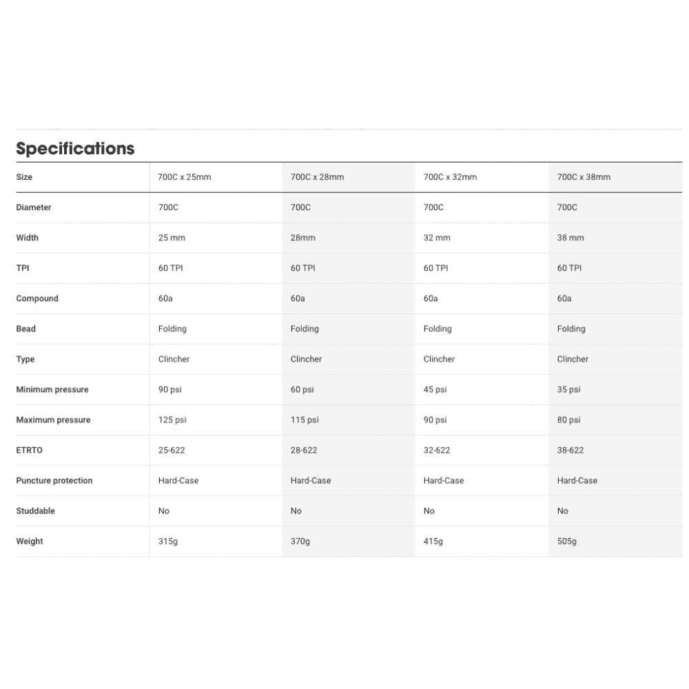 Leading puncture protection with traction for confidence in all conditions.Improved hard-case puncture protection provides best-in-class defence against flats. The proprietary TR-endure compound delivers long lasting-traction in all conditions. A smooth-rolling, lightly treaded design with siping channels for traction and all-weather confidence.
