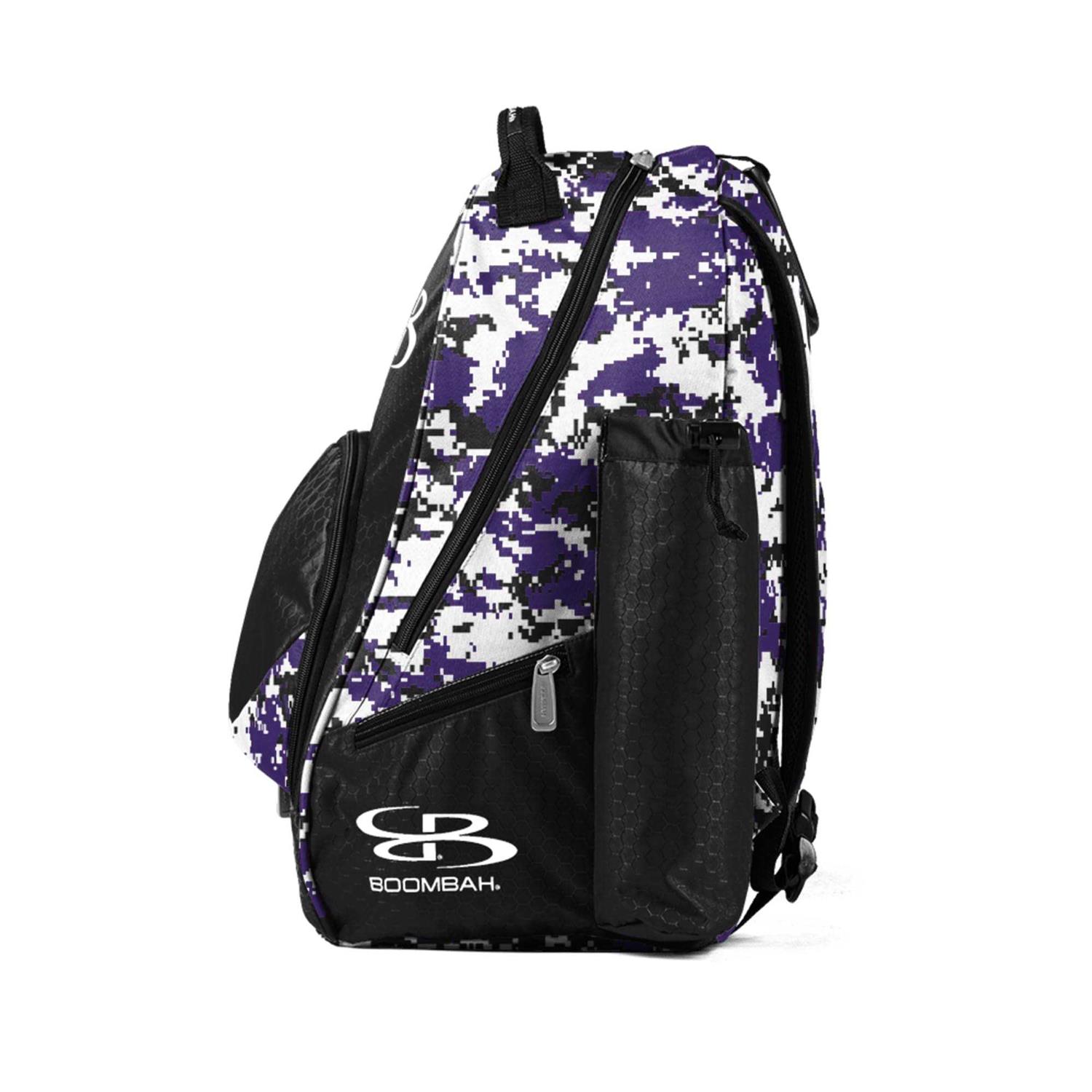 Polyester Camo version of Boombah’s Tyro Bat Backpack has 3 Exterior Pockets and Interior Pocket will hold Helmet, Cleats, & Glove Adjustable backpack straps Dimensions: 20″ Tall x 15″ Wide x 10″ Deep Hold 2 bats. Maximum bat barrel size is 2 5/8″ From Boombah – the leader in performance engineered sports apparel and equipment. Key features include: br BR – Rip Stop Nylon Fabric BR – Two Bat Holders BR – Three Exterior Pockets BR – Interior Pocket will hold Helmet, Cleats, & Glove! BR – Dimensions: 20″ Tall x 15″ Wide x 10″ Deep BR – Maximum bat barrel size is 2 5/8″ BR – Boombah is transitioning some colors of our bags to create better matching throughout our lines of product. This may create some variation in color matching across all bags. br br About Boombah: /b Boombah baseball and softball products are part of our huge family of sporting gear, apparel and accessories.