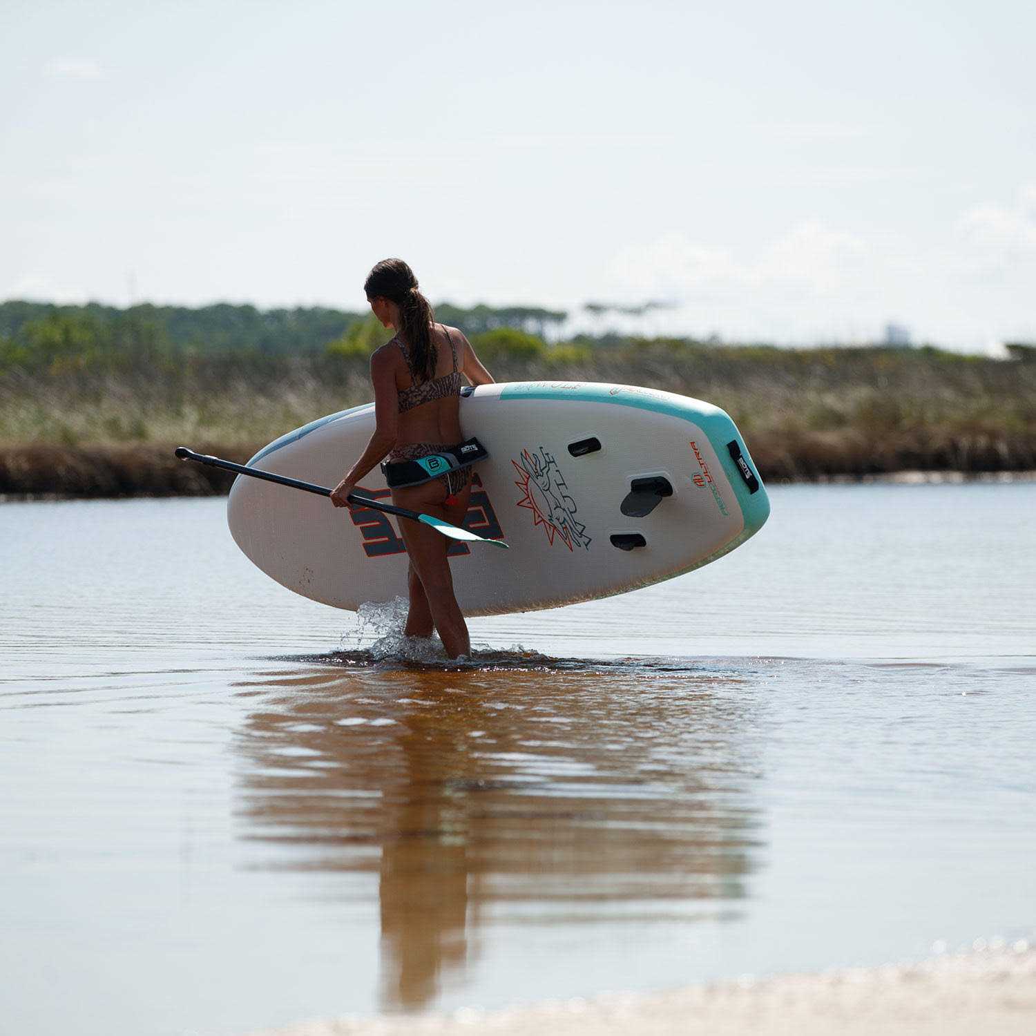 The WULF Aero from BOTE redefines entry-level paddleboarding with its exceptional blend of style, stability, and affordability. Designed for newcomers and seasoned paddlers alike, this inflatable stand up paddle board embodies BOTE’s commitment to quality, innovation and stability. The WULF Aero, crafted with Aero ULTRA Technology, stands out as a lightweight yet robust board, weighing around 20 pounds, making it significantly lighter and more portable than many other boards in its class. Featuring a 33” width, the WULF Aero offers superior stability, offering confidence and ease for beginners and providing ample performance for the more experienced paddler. This stand up board stands out for its affordability, yet it doesn’t skimp on features. It includes the innovative MAGNEPOD system for secure accessory attachment and is expertly built to withstand regular use and various water conditions. The WULF Aero is more than just a paddle board; it’s an entryway into the world of water sports, balancing functionality with fun. Whether embarking on your first paddleboarding journey or seeking a versatile, budget-friendly addition to your collection, the WULF Aero is an exemplary choice. It embodies BOTE’s mission to make water adventures accessible and enjoyable for everyone, offering an exceptional combination of performance and value.