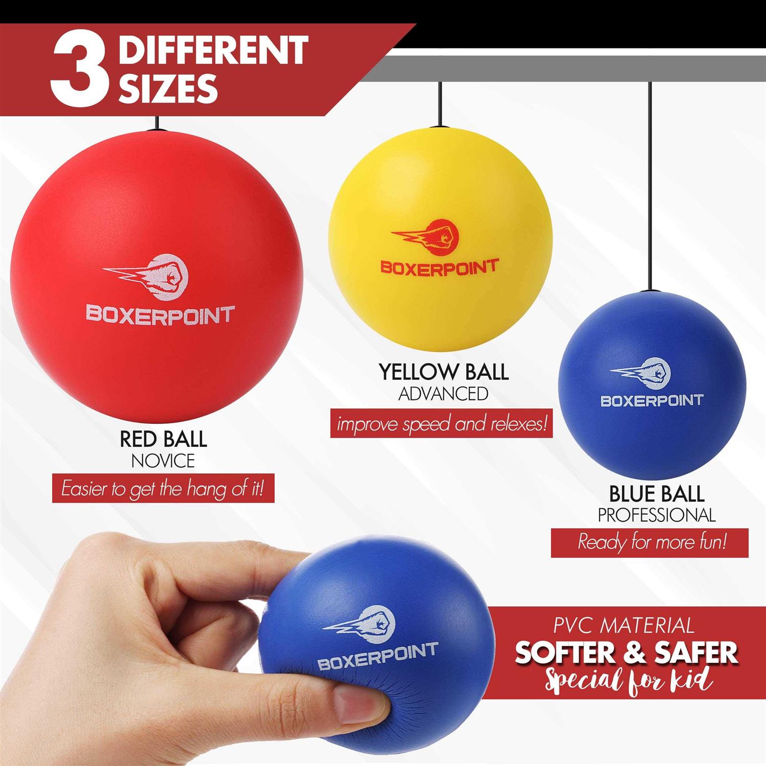 Boxerpoint Boxing Reflex Ball Set for Kids – 3 Difficulty Level Soft Punching Balls – Boxing Training Equipment with Adjustable Headband Boxing