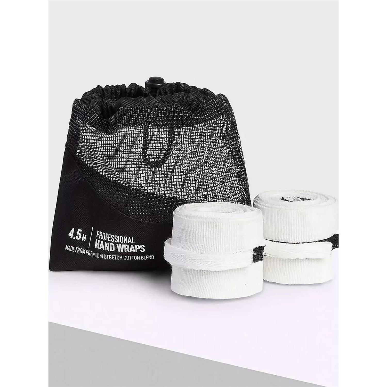 Made from a supple stretch cotton blend, the 4.5m BOXRAW Hand Wraps feature a patent pending hook and loop closure on the thumb loop saving you time as you wrap or unwrap your hands. The reinforced rubberised wrist strap gives added support while the custom-developed fabric sits soft but firm to the skin, allowing for the perfect amount of variance in hand and knuckle positioning. The choice of World Champions comes complete with a wash and carry bag. 4.5 metres length Premium stretch cotton blend BOXRAW printed tape & rubber injection logo Patent pending hook and loop closure Thumb lock loops, velcro fastening Washable carry pouch 80% Cotton, 20% Polyester 4.5m BOXRAW Hand Wraps – White BOXRAW Equipment.