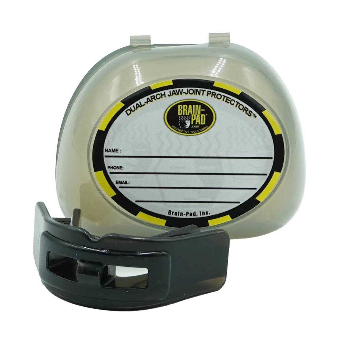 The Brain-Pad LoPro Plus Mouth Guard is an industry favorite for comfort and jaw impact protection. The mouth guard secures, stabilizes and cushions the jaw out of harms way, offering TMJ and brain safety while protecting the lips, gums and covering all teeth. The Brain-Pad LoPro Plus is designed to fit easily over braces and allows for increased, constant breathing, even while clenching. The LoPro Plus even allows players to speak to one another. The mouth guard can also recover lost strength from TMJ Socket Damage, activate maximum muscle potential and promote healing in TMJ region.