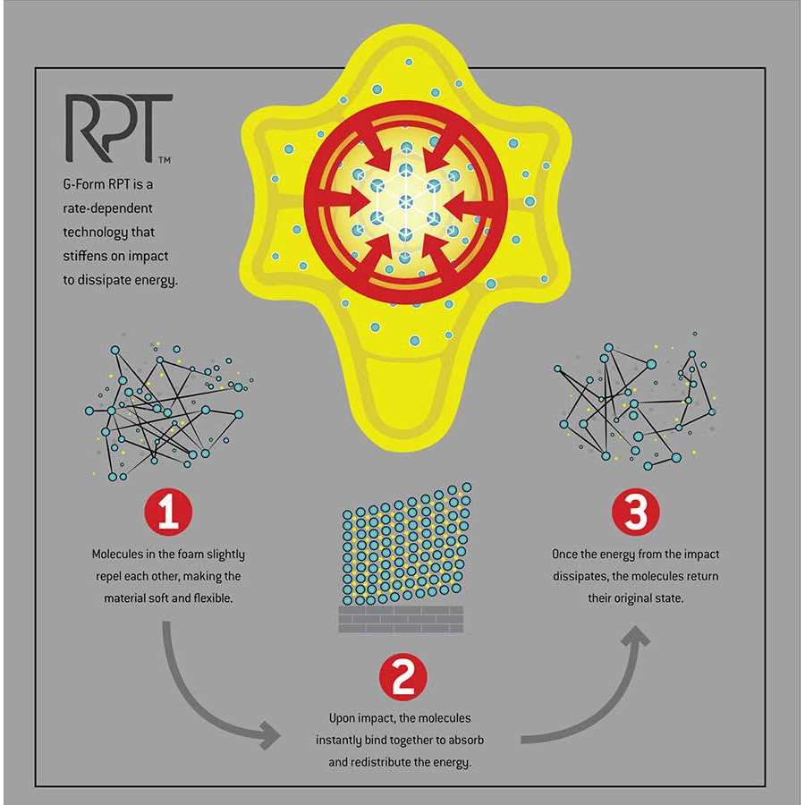 - Protected by G-Form’s proprietary impact protection technology that momentarily stiffens upon impact to dissipate energy