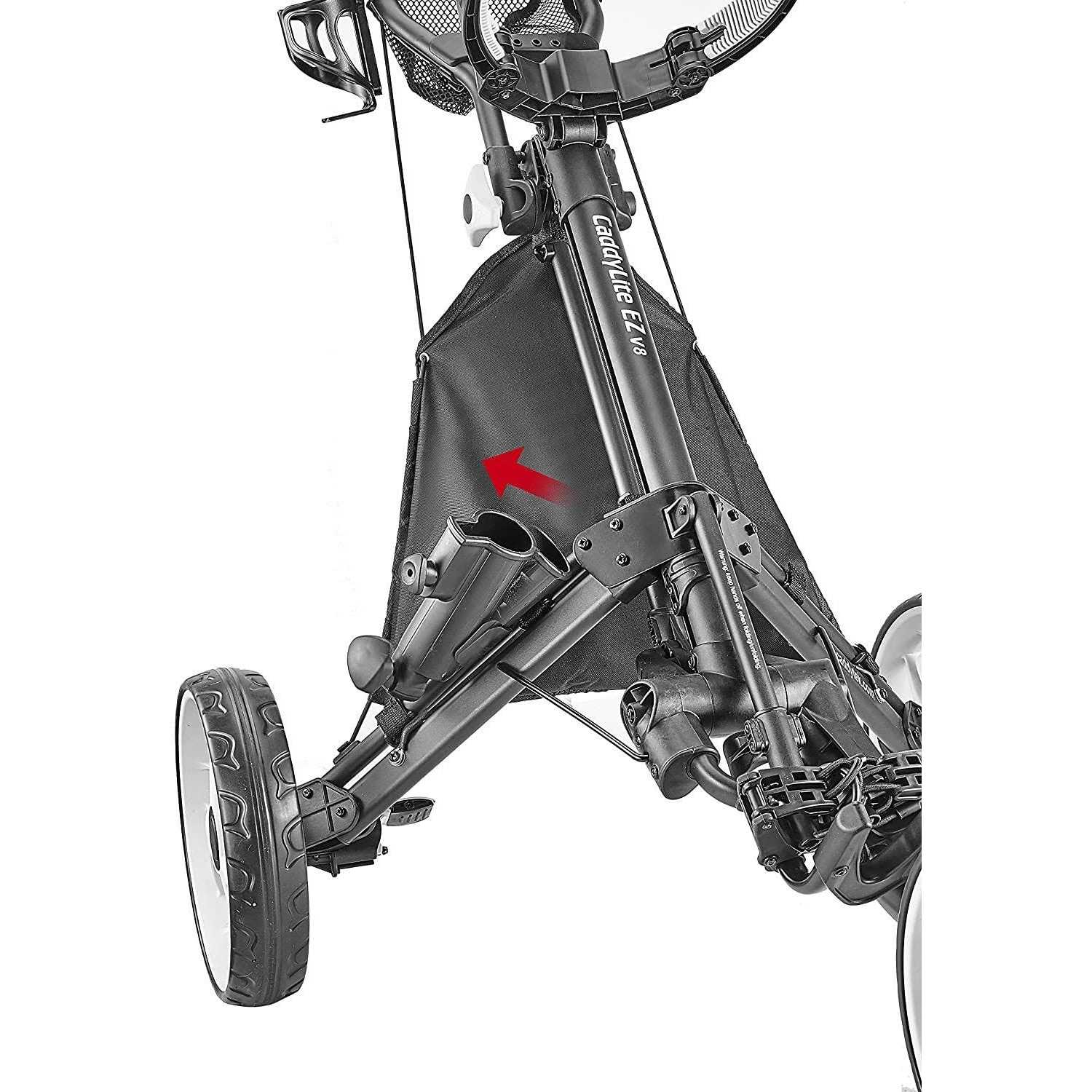 Model: CaddyLite EZ V8 – BLUE. 31″ wide body design for effortless pushing. T hree large 1 1. 5” x 2. 6 ” EVA maintenance-free wheels with ball bearings provide perfect traction on all types of terrain.