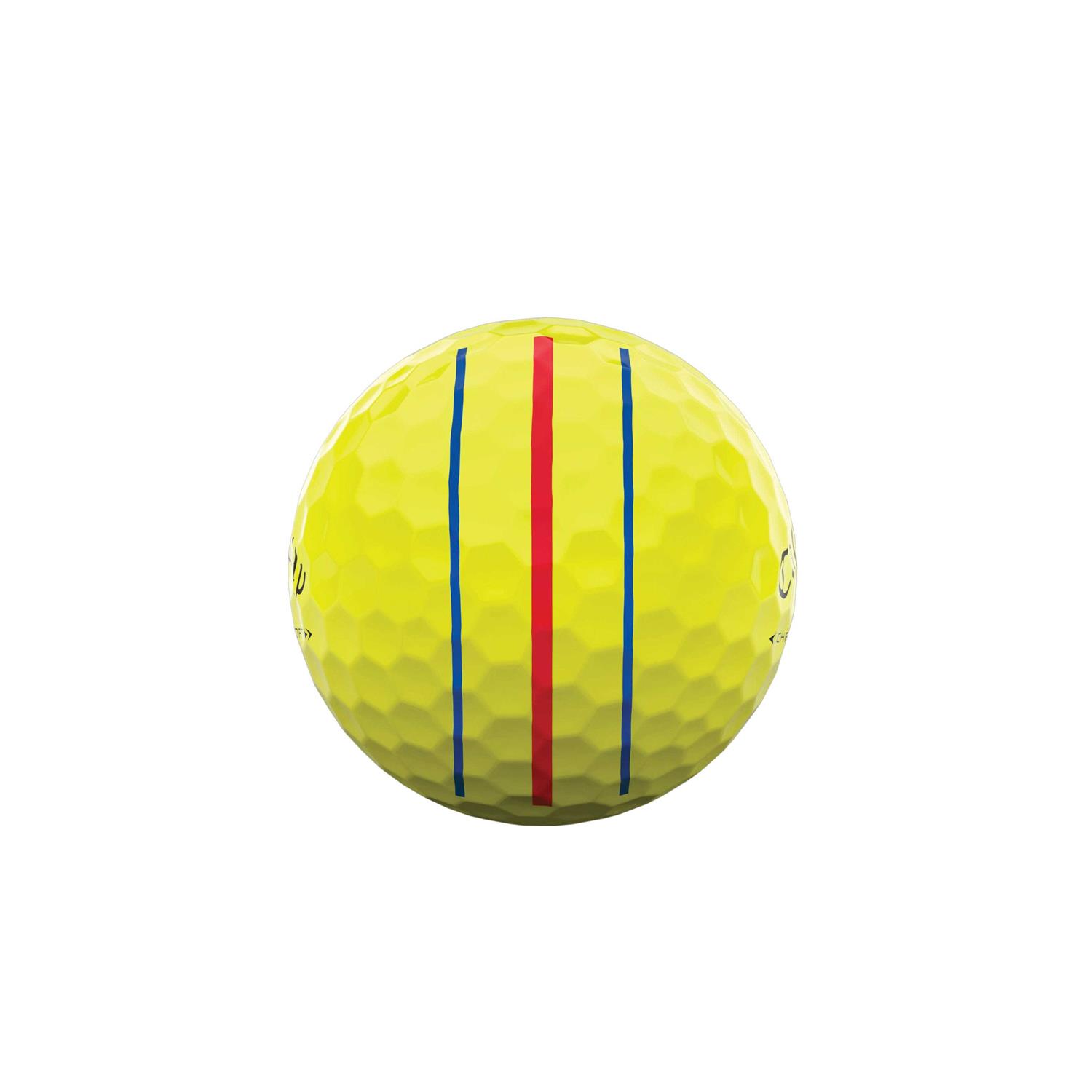 The Callaway Chrome Soft Triple Track is better for everyone, from amateurs to major winners. Now with proprietary new Precision Technology, the Chrome Soft Golf Ball is longer through the bag while providing the signature soft feel that golfers love. The Chrome Soft delivers outstand feel, excellent distance, and incredible forgiveness. Key performance characteristics include the signature feel, more distance off the tee, low spinning iron shots and a high level of greenside control. New Precision technology delivers the tightest dispersion, consistently fast balls speeds and total performance. Callaway have enhanced every component and design feature to create the highest quality golf ball. The new Hyper Elastic SoftFast Core gives Tour level speed, spin, and control through the bag, while a consistent ball flight in every condition comes from the Tour Aero design. Triple Track lines have been prominently featured on the ball for improved putting accuracy. Triple Track uses Vernier Hyper Acuity to improve alignment compared to a regular side stamp alignment aid.