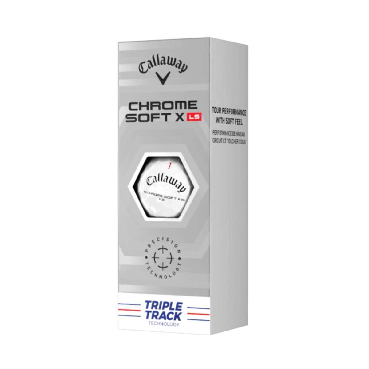 CALLAWAY Chrome Soft X LS 22 Triple Trk Golf Balls 12pk Whte Compared with Chrome Soft X LS 21, the new Chrome Soft X LS 22 is faster off the Driver with a new cover for more greenside spin. Precision Technology delivers consistently fast ball speeds, tight dispersion, and consistent performance. New Hyper Elastic SoftFast Core for Tour level speed and lower spin on full shots with greenside control. Penetrating ball flight and lower drag with Tour Aero.