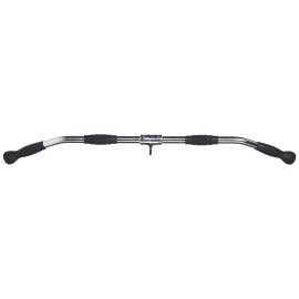 Add to your home gym with the CAP Deluxe 28 inch Curl Bar Cable Attachment with Rubber Handgrips. as it is ideal for doing curls and other arm strength exercises. The bar attaches to your home gym or Smith Machine. The CAP curl bar is made from a durable steel and it features rubber hand grips to keep your hands from slipping as you work out. The revolving hanger allows you to move it around. The curl bar attachment is 28 inch long and weighs 8 pounds. The high polished chrome finish gives it a high-end look. Attach it to your home gym and get started on working all the muscles in your arms for a toned look. Color: Silver.