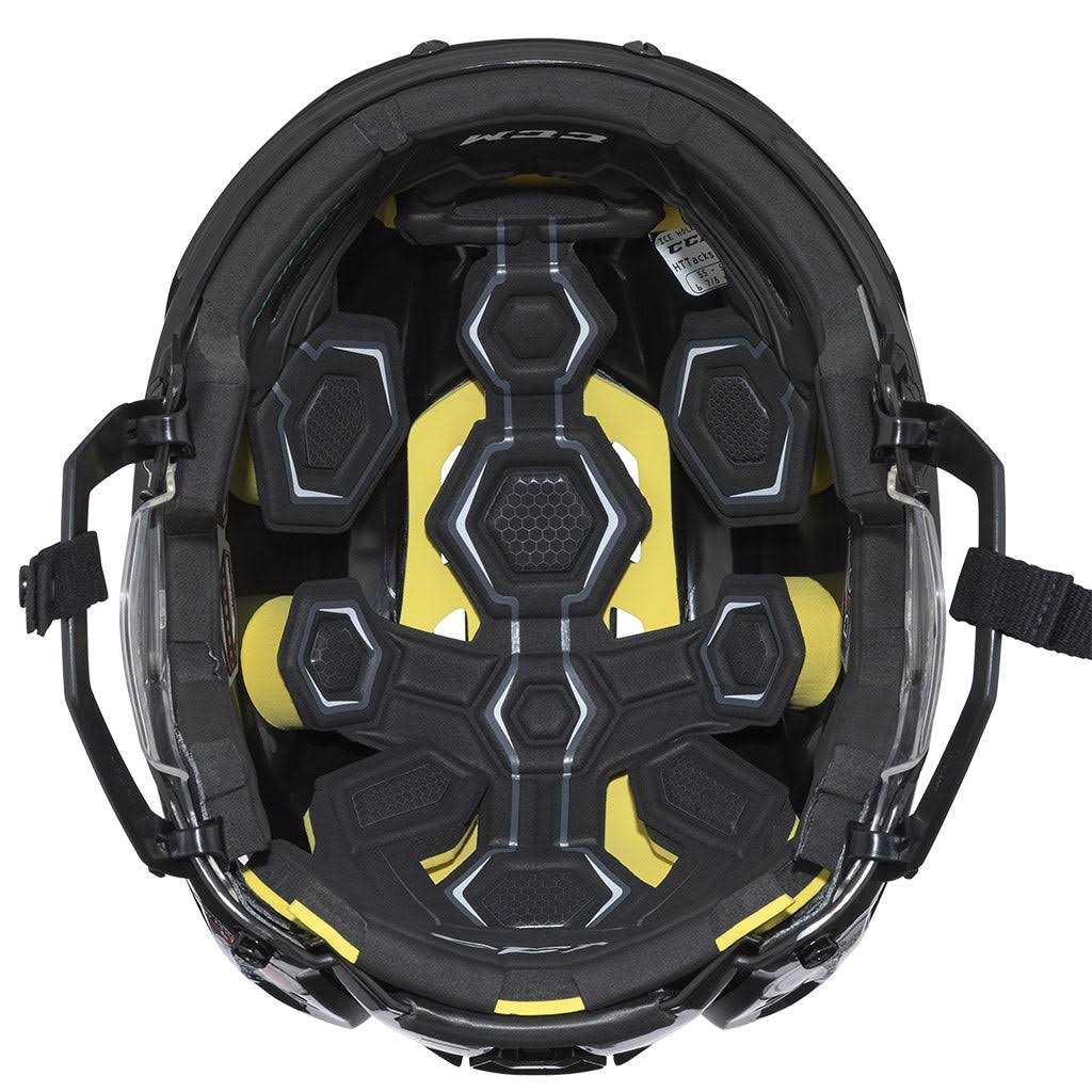 The CCM Tacks 310 Hockey Helmet brings elite level protection to your noggin. This two-piece adjustable shell has a tool-less adjustment piece to expand and contact the helmet for a perfect fit. The liner in the helmet is a major upgrade in protection and comfort with dual density layering throughout. The Tacks 310 hockey helmet is for a serious player looking for impact protection with a traditional fit. Gel-like feel that molds around your head. Memory foam feel extremely soft and comfortable. The Tacks 310 is made with a pro-preferred shell with extensive perforation for maximum airflow.