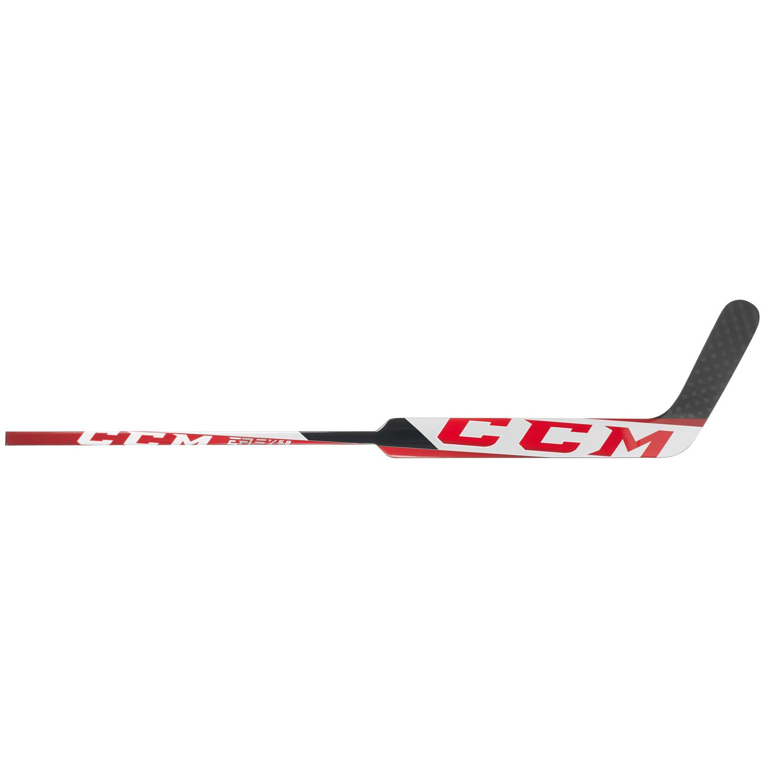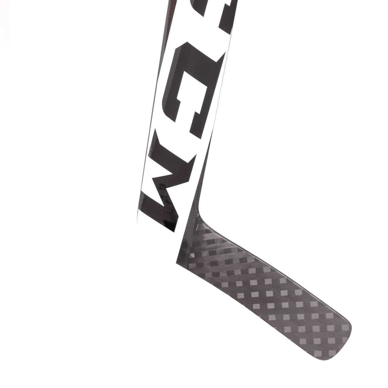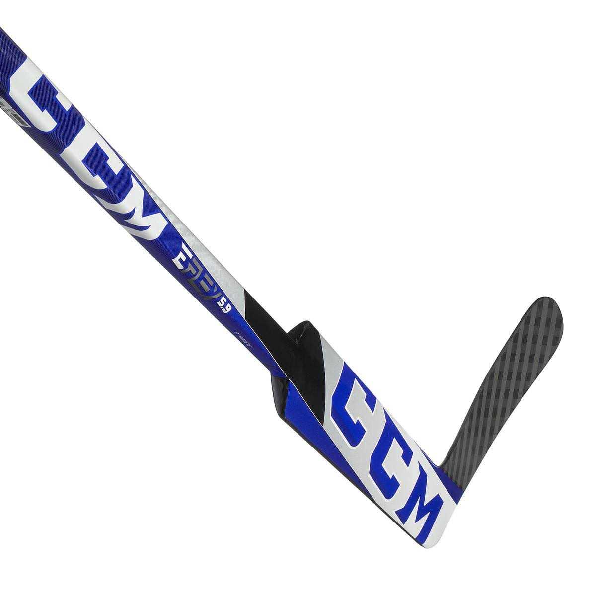 New for 2021, CCM continues to push the pace of innovation and design with the latest addition to the Extreme Flex franchise. CCM has made some notable changes to their line of composite sticks, including an asymmetrical construction and lower flex profile. These all new changes take the Extreme Flex Line you know and love to the next level. Starting with the look, CCM went with an off-center logo design to bring attention to the stick. This same logo design can be found on the back of the paddle. The construction of the E5.9 Senior is based off of Carbon matrix technology which includes a carbon fiber weave that provides overall stiffness and durability. Zeroflux technology foam inside of the stick creates better vibration dampening tendencies so the goalie does not feel rattling in the hand when making saves. This foam also helps create a solid balance point so the goalie does not feel fatigue in the arm throughout use. Not only is the E5.9 Senior designed to stop pucks, but it also designed to help goalies snap quick outlet passes. With the low flex profile and a softer shaft flex, expect this stick to feel different than other models of years past. If you are an advanced-level goaltender looking for a solid composite stick with a low whip and fantastic balance, look no further than the CCM Extreme Flex E5.9 Senior Goalie Stick.