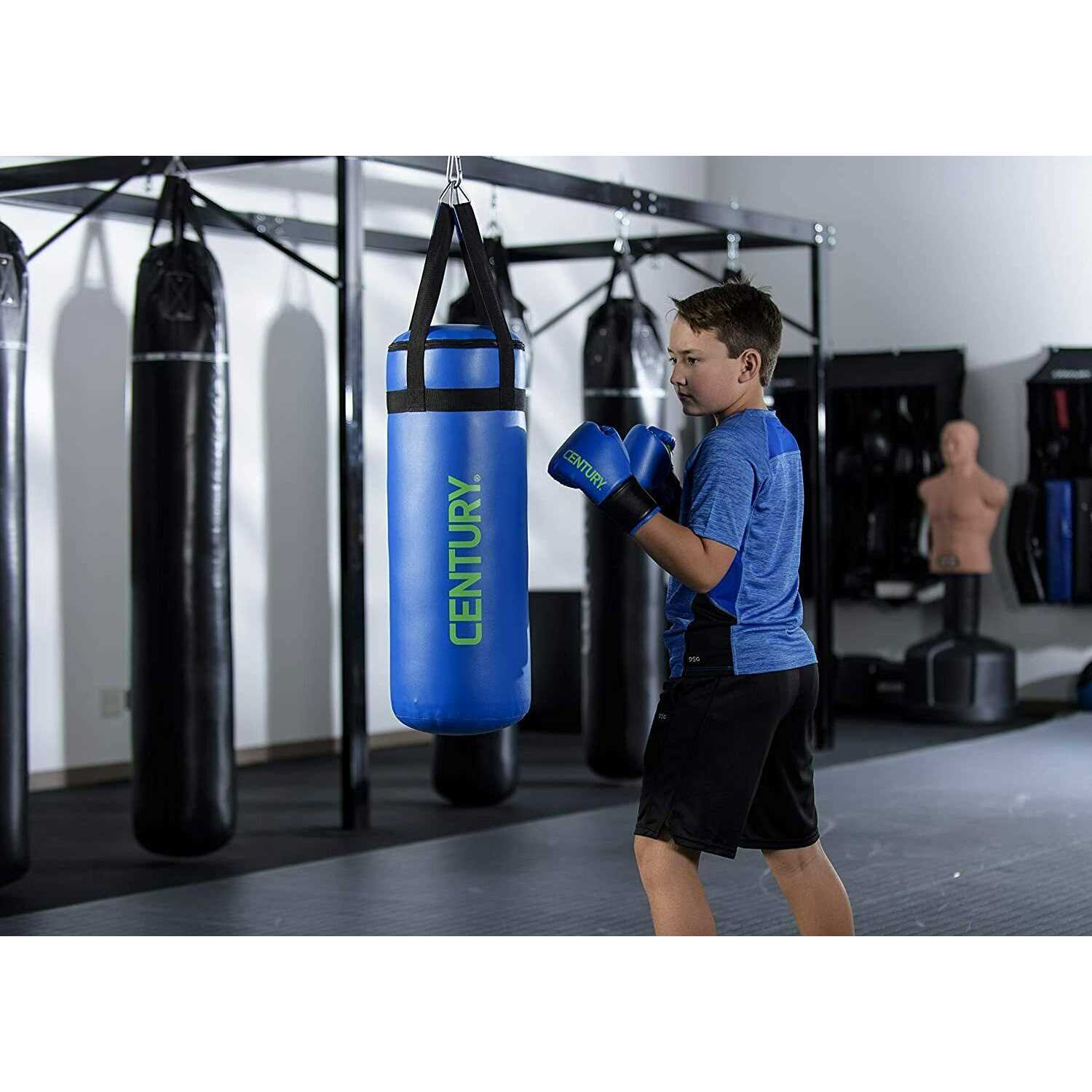 The punching bag is easy to hang up and withstands heavy hits from your little slugger. The gloves fit snugly and are designed for a variety of martial art athletes. The open palms and fingers are dexterous, and easy for kids to take on and off. The padded knuckles keep their hands properly covered. This set is recommended for kids 6 and older. Gloves feature open-Palm design and padded knuckles for comfort Open fingers and palms allow lots of movement Padded knuckles are comfortable and absorb blows Bag features reinforced Vinyl construction for durability and extended use Web straps and chain loops makes the bag easy to hangBag weight: 16 lbs.