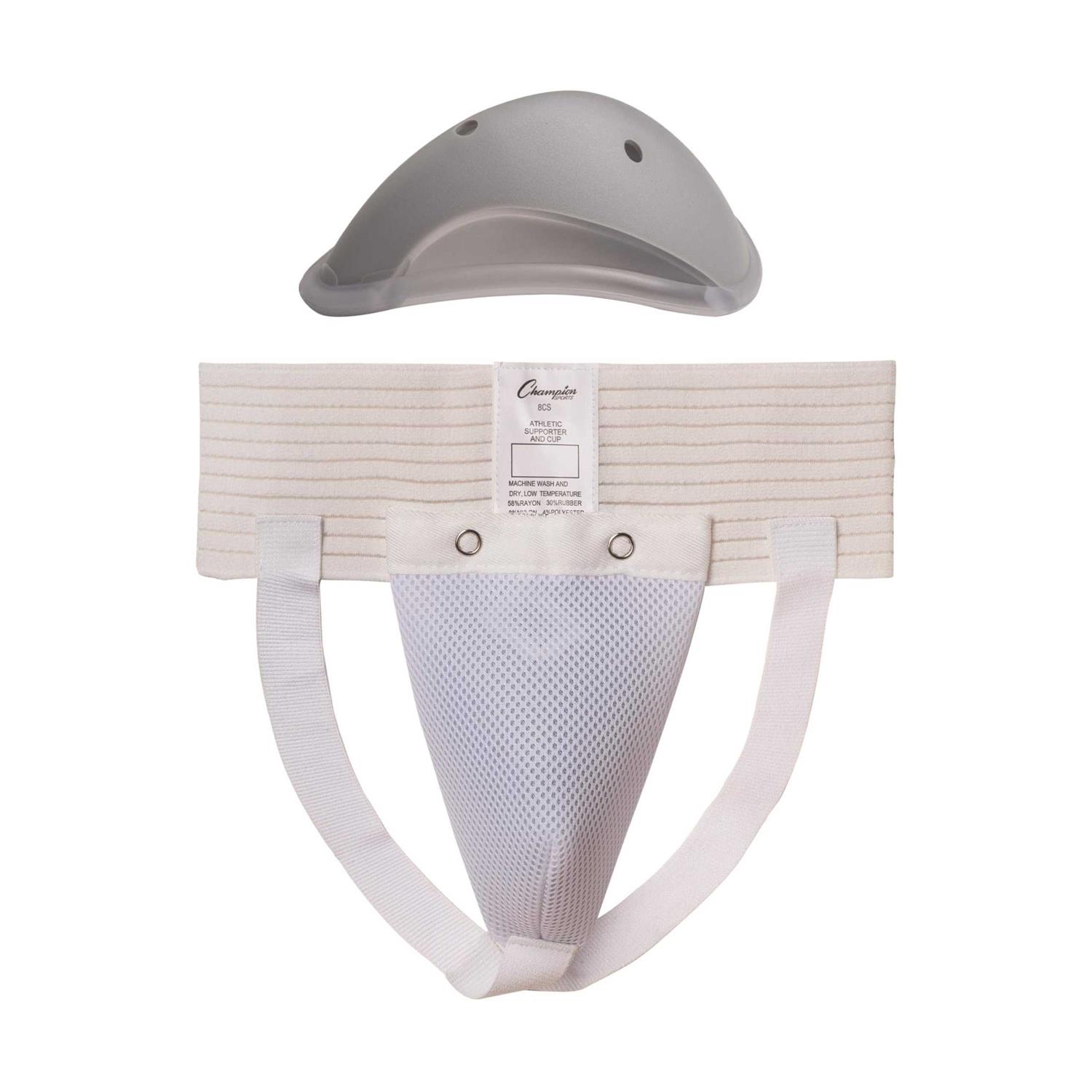No matter what sport you’re into, protect yourself with this boys’ intermediate Deluxe cup and supporter set from Champion Sports! It includes a hard, contoured cup with cushioned edges for comfort and a supporter featuring an elastic waistband, soft pouch and a snap closure.