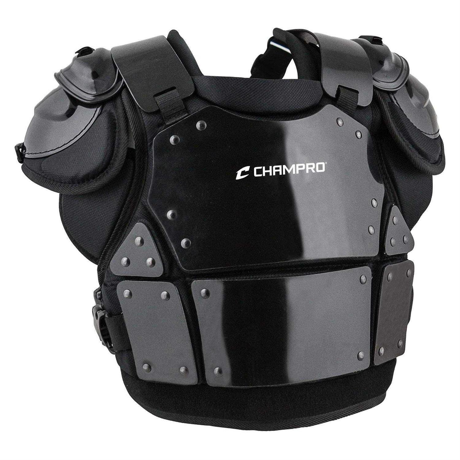 Champro Air Management Plated Umpire Chest Protector-14” H- The Champro Air Management umpire chest protector is designed to provide maximum protection for any umpire with its plated construction. This baseball/softball umpire chest protector utilizes Air Management technology to distribute impact force from stray balls evenly, providing ultimate protection behind the plate. With maximum protection in mind, this umpire chest protector has durable molded PE plating and full-coverage shoulder pads. This chest protector features easily adjustable pectoral pads, and a 5-way adjustable harness equipped with durable T-hook clips for the ideal fit and comfort.