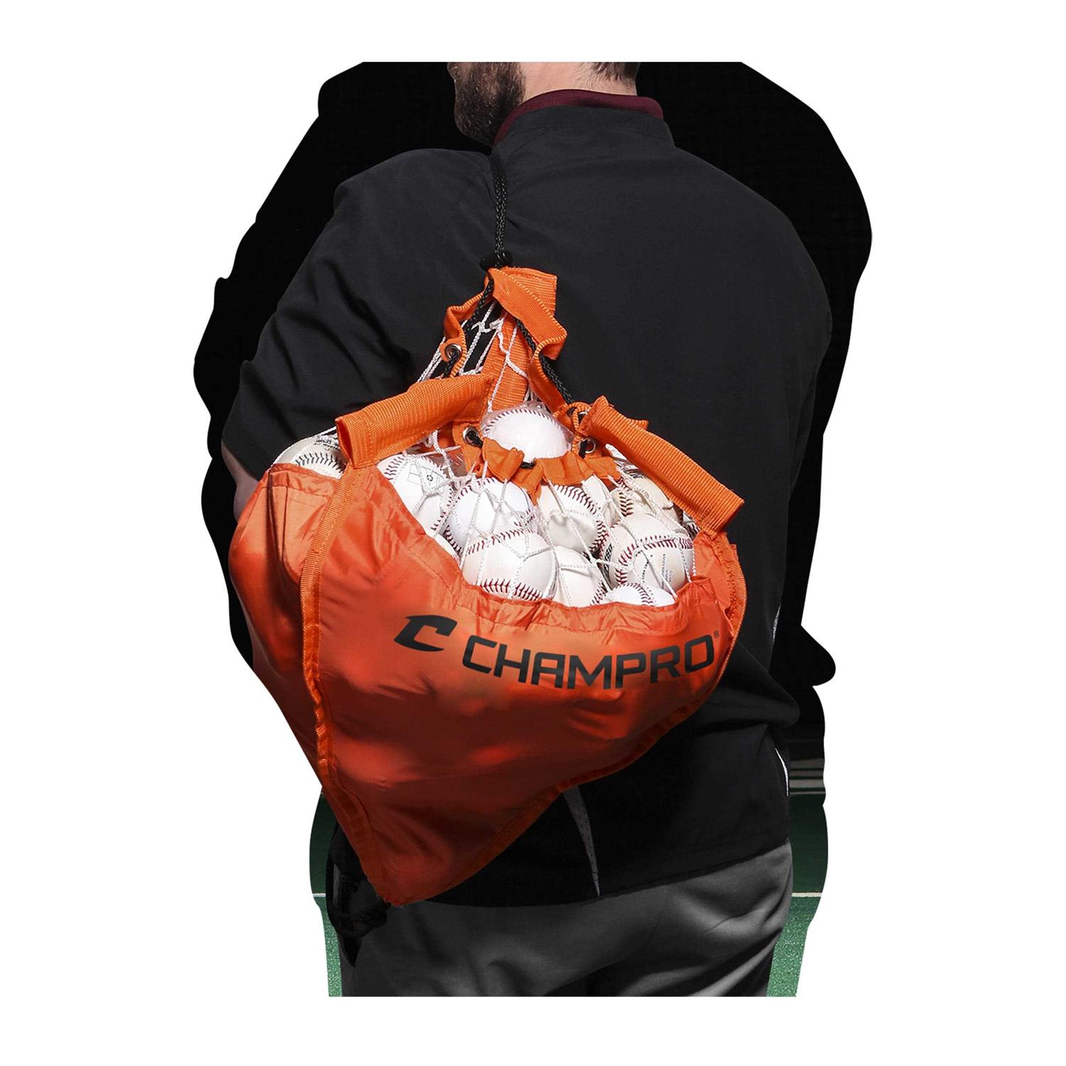 The CHAMPRO Ball Caddy simplifies both setup and cleanup for batting practice. Its 2-in-1 design combines a tripod with a removable drawstring storage bag, creating a caddy that holds balls for hitting drills and allows you to easily transport them afterward just by pulling the bag off the stand. A sturdy tripod base formed of shock-corded steel poles provides stability wherever you set up. The caddy assembles and collapses in minutes, so you can spend more time on practice. Just slide the nets corners onto the base poles, and its ready to go. Holds up to 60 baseballs or 30 softballs while carrying. While standing, it holds twice as much–up to 120 baseballs or 60 softballs. Comes with a convenient carry bag to easily transport the caddy to and from practice, whether its on the diamond or at the batting cages.