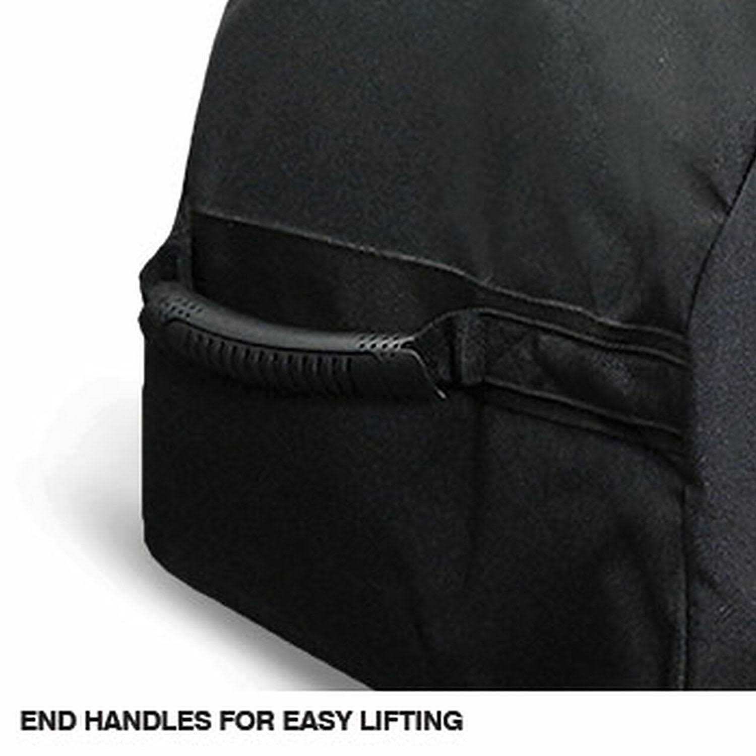 - Front features a flex-grip neoprene handle