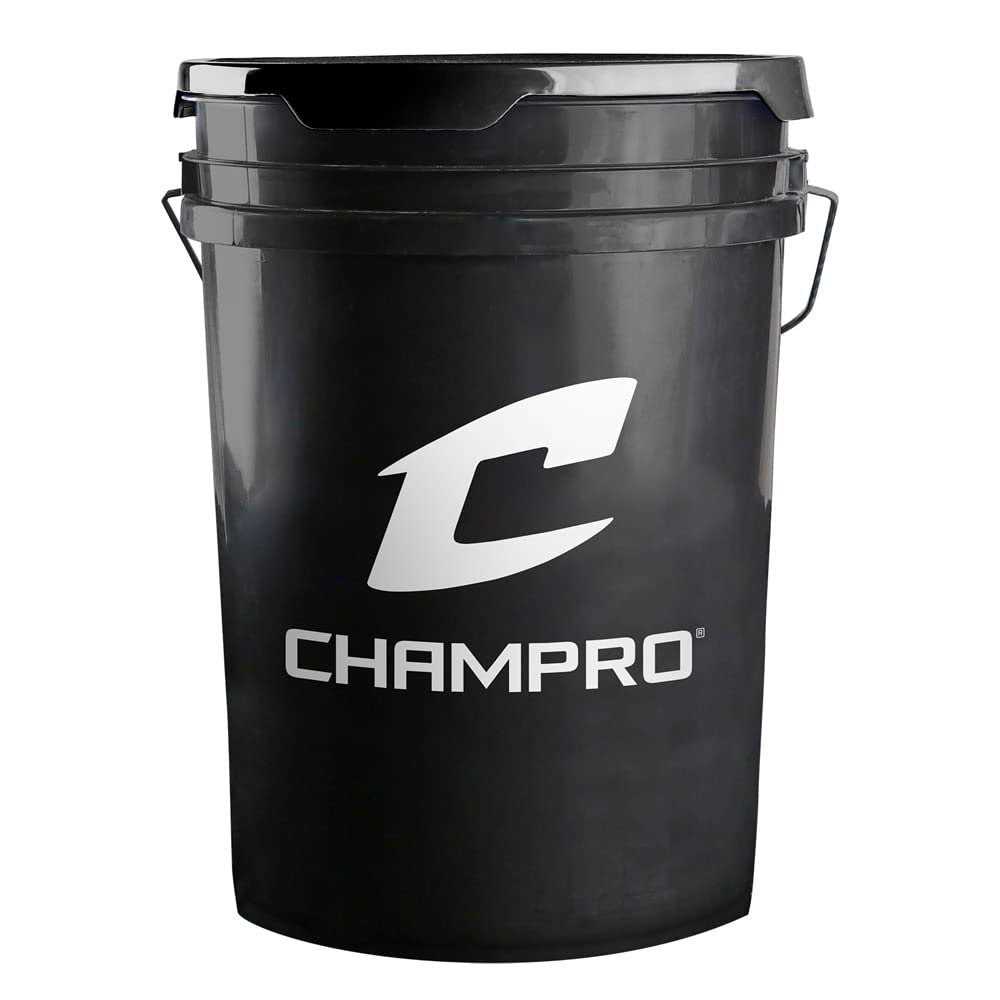 Baseballs by CHAMPRO. Details:This CHAMPRO 6-Gallon Bucket of Official League Baseballs is a great way to stock your equipment arsenal with balls ideal for high school practices and youth games. Includes 30 CBB-200B official league baseballs with cosmetic blemishes. All baseballs in the bucket are made with a full-grain leather cover, raised seams, and cushion cork core wound with metered tension 5% wool yarn. The cosmetic blemishes on these baseballs affect only their appearance, so teams can get quality performance at a lower cost. The bucket measures approximately 12.5” L x 12.5” W x 18” H and can hold up to 4 dozen baseballs or 18 softballs. It also comes with a foam-padded lid, so the bucket doubles as a comfortable seat. Include with each bucket is a Rods Sports can sleeve.