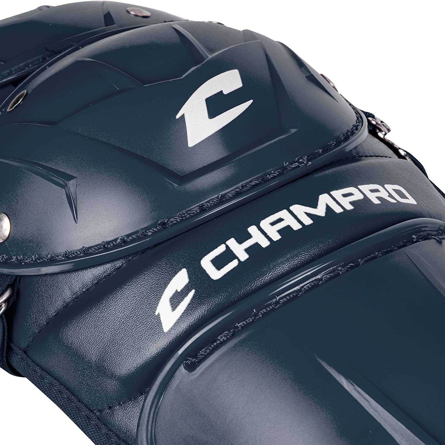 The CHAMPRO Optimus MVP Leg Guards Made of high-performance PE, the shin plates display improved flexibility and durability without added weight. The cantilever-shaped lining system spreads the shock of impact and minimizes force transferred to the catcher s shins. The double knee extra knee cap covers part of the upper leg, providing extended protection. Air flows through the built-in ventilation holes to prevent heat buildup and keep catchers cool. Available in 4 sizes and colors: Adult (16. 5 long), Senior League (14. 5 ), Youth (13. 5 ), and T-Ball (12 ). Choose between black, navy blue, royal blue, and scarlet red.