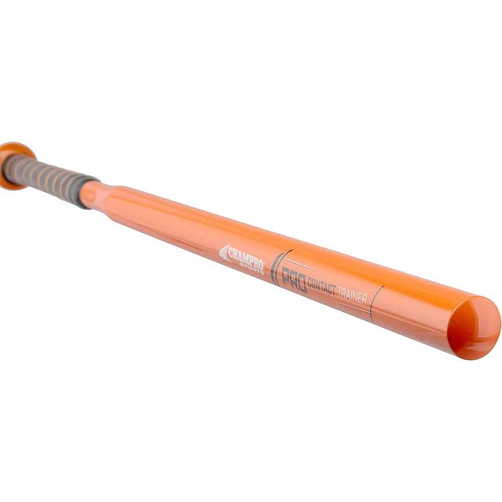 The CHAMPRO Pro Contact Trainer Bat is designed to help athletes develop swing speed, strength, and hand-eye coordination. Batting practice with its skinny barrel can improve contact rate and help hitters make more solid contact with the ball when using a regulation bat. Its heavy-duty iron construction helps athletes develop strength and endurance while working on their accuracy and technique. Comes with 3 plastic golf size training balls for practice use. Measures 30 inches long; weighs 22 ounces.