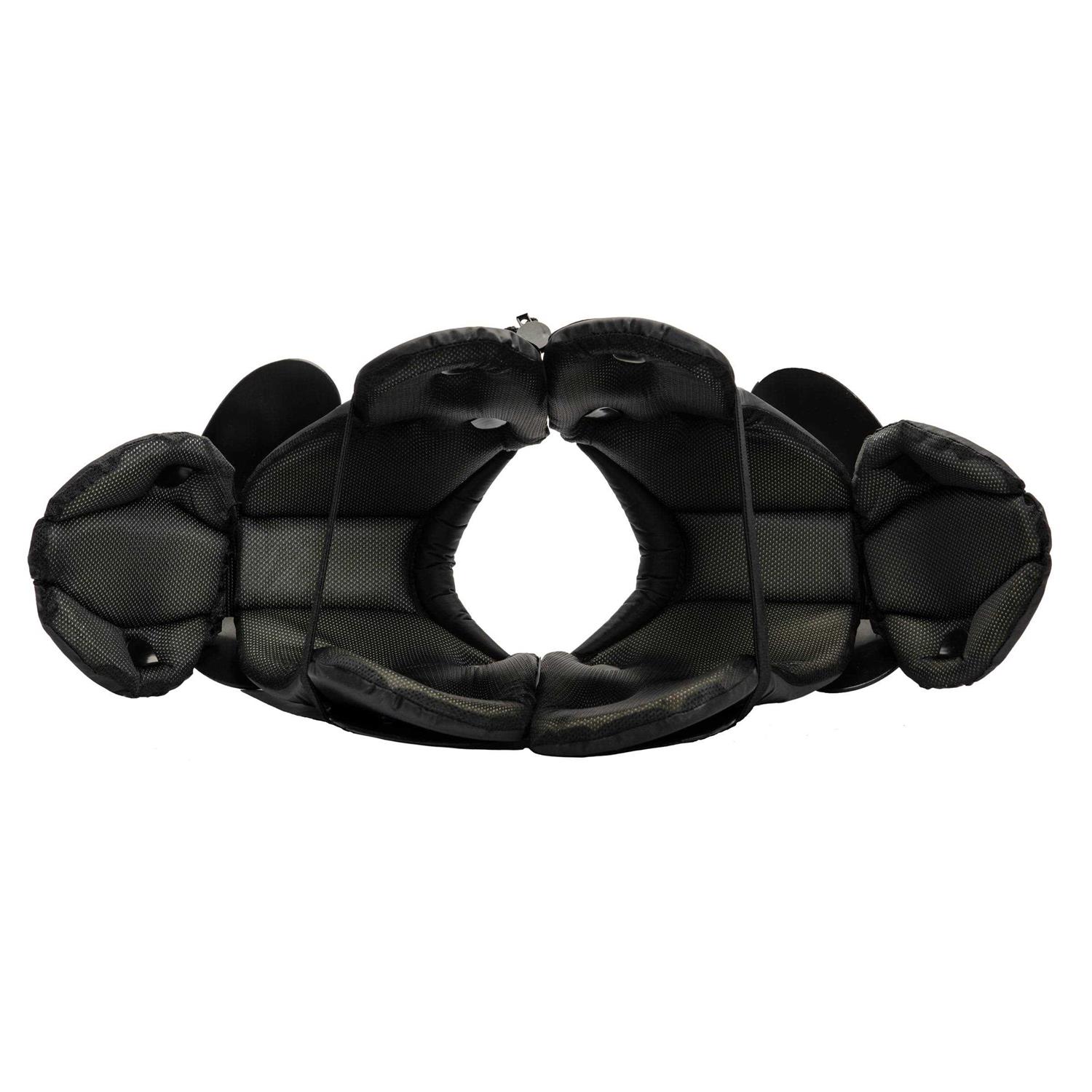 The CHAMPRO Scorpion Shoulder Pads are made to prep any youth football team with reliable, quality equipment. Their cantilever design disperses impact and shock, maintaining the pads shape and structural integrity, while the high-impact polyethylene construction increases the arches strength and durability. Sliding 1 wide elastic straps offer easy adjustment, so athletes can customize their pads fit for maximum comfort. Personalizing their fit helps athletes feel secure with pads that conform to their chest and also allow freedom of breath and movement. An easy release system helps players unhook the straps, so they can get the pads on and off without assistance. They can also easily customize the pads with attachments, such as backplates and neck collars (available separately) using the pre-drilled holes. Available in 7 sizes, the Scorpion shoulder pads are built to fit young players up to 180 pounds.
