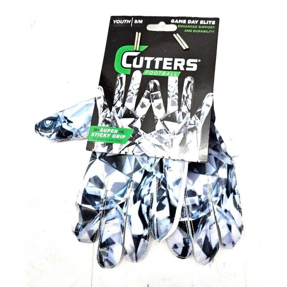 Cutters Game Day Elite Football Receiver Gloves, White Diamond, Youth S/M