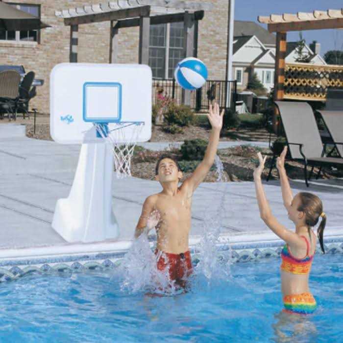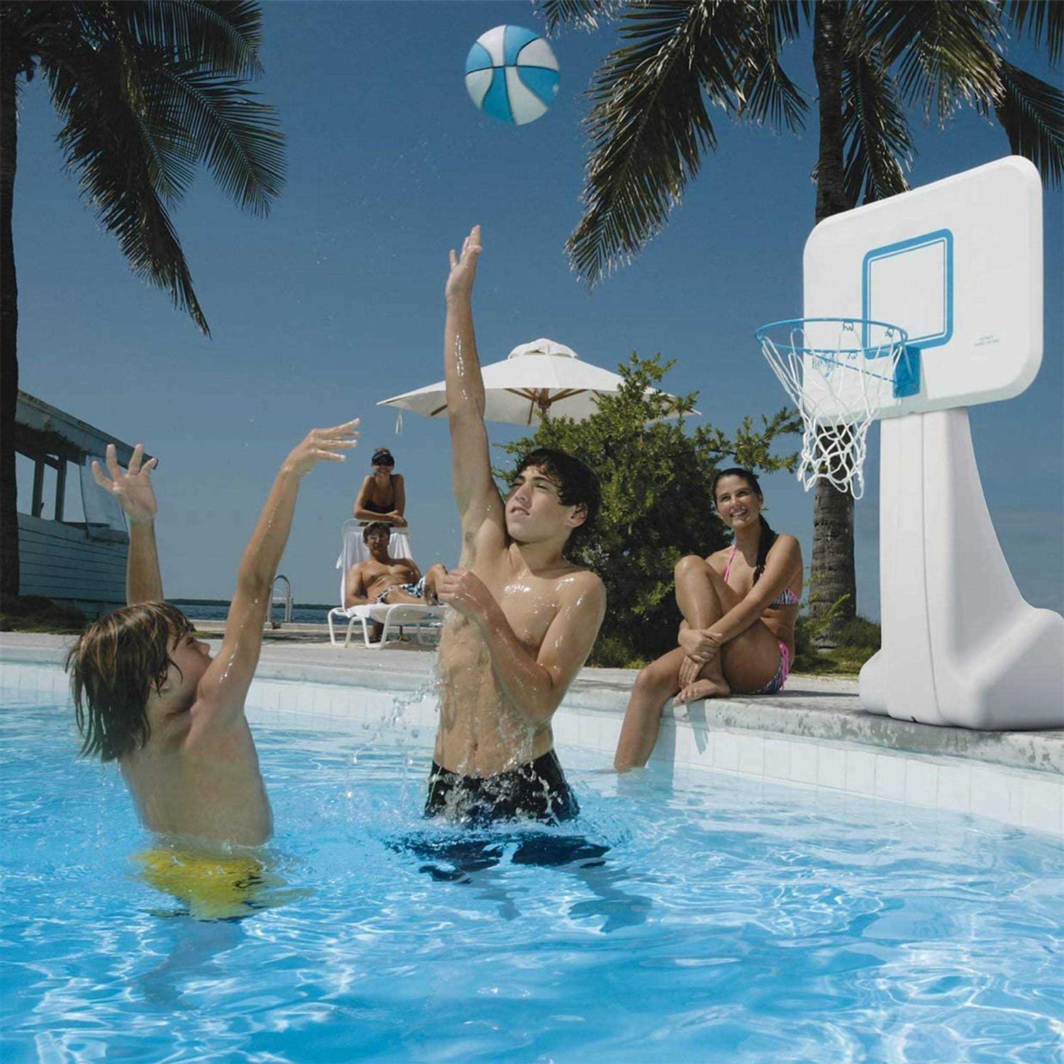 • Unit comes complete with a mid size, color matched basketball with textured grip specifically designed for water use.
